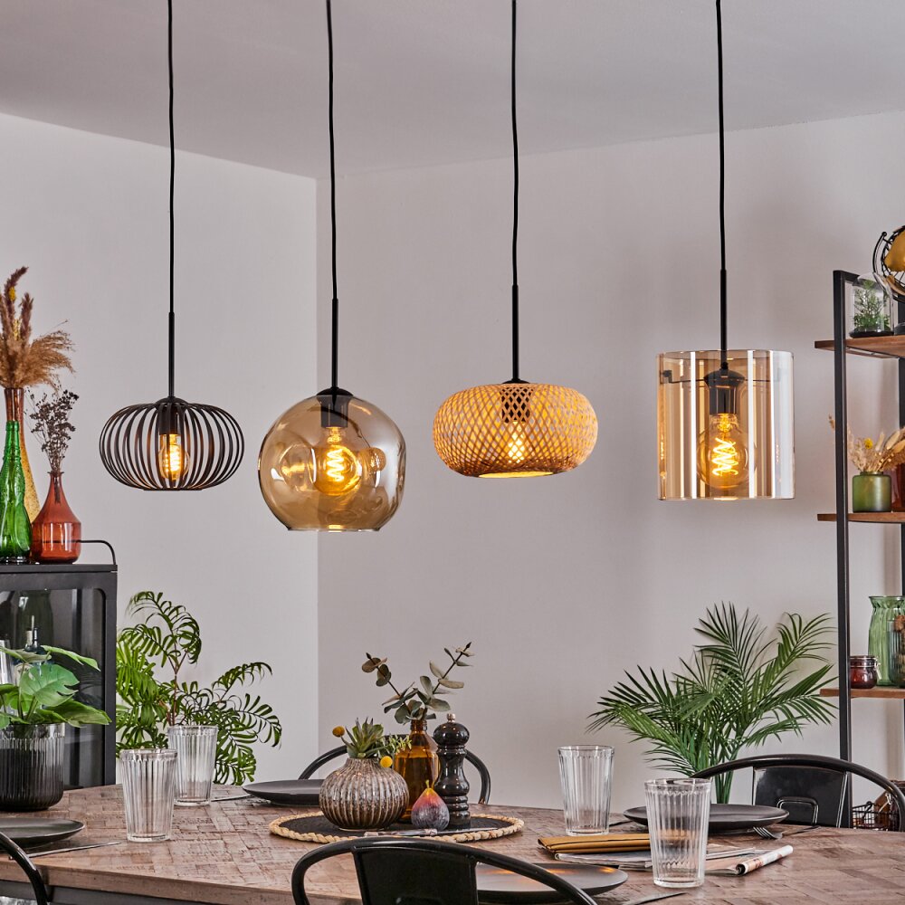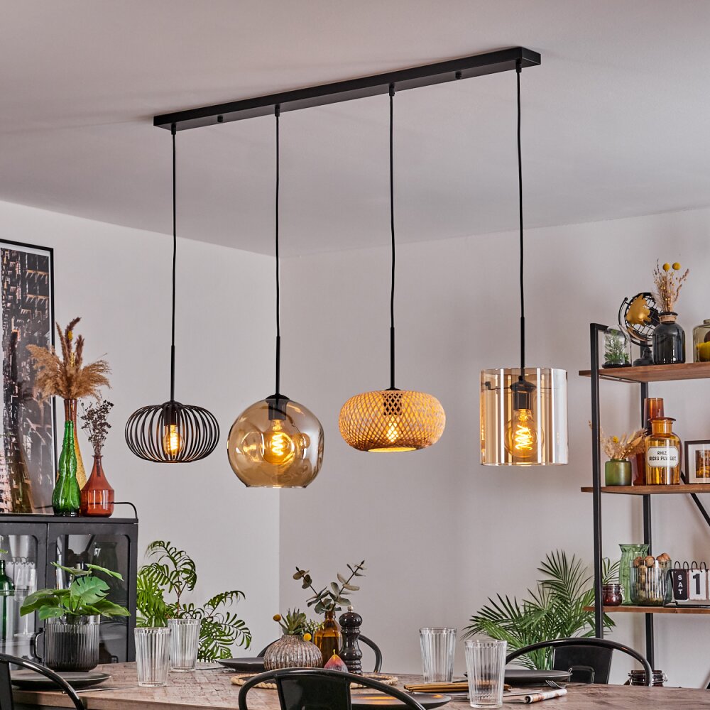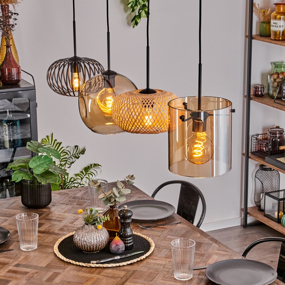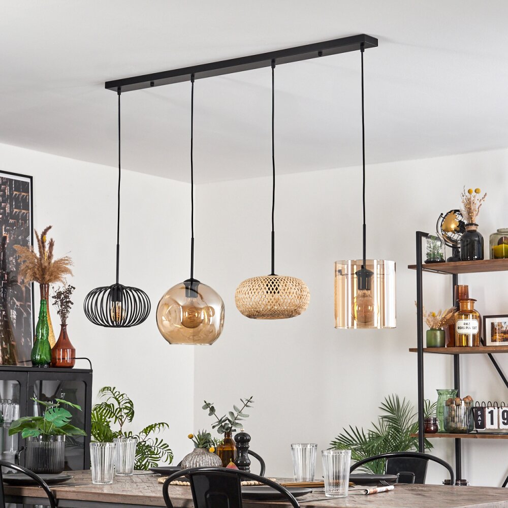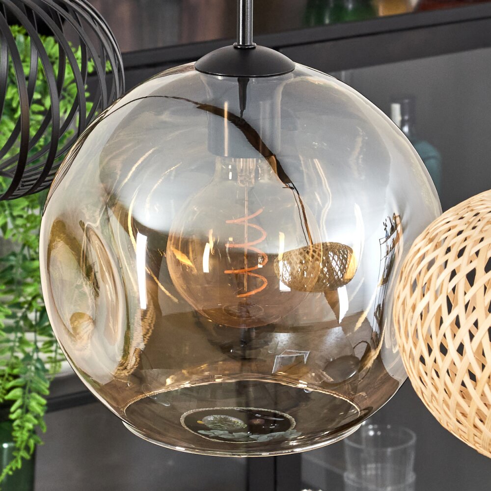 Ripoll Hanger - Glas 25 cm, 20cm Amber, Natuurlijke kleuren, Zwart, 4-lichts