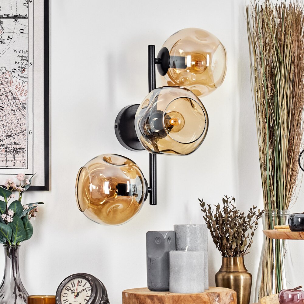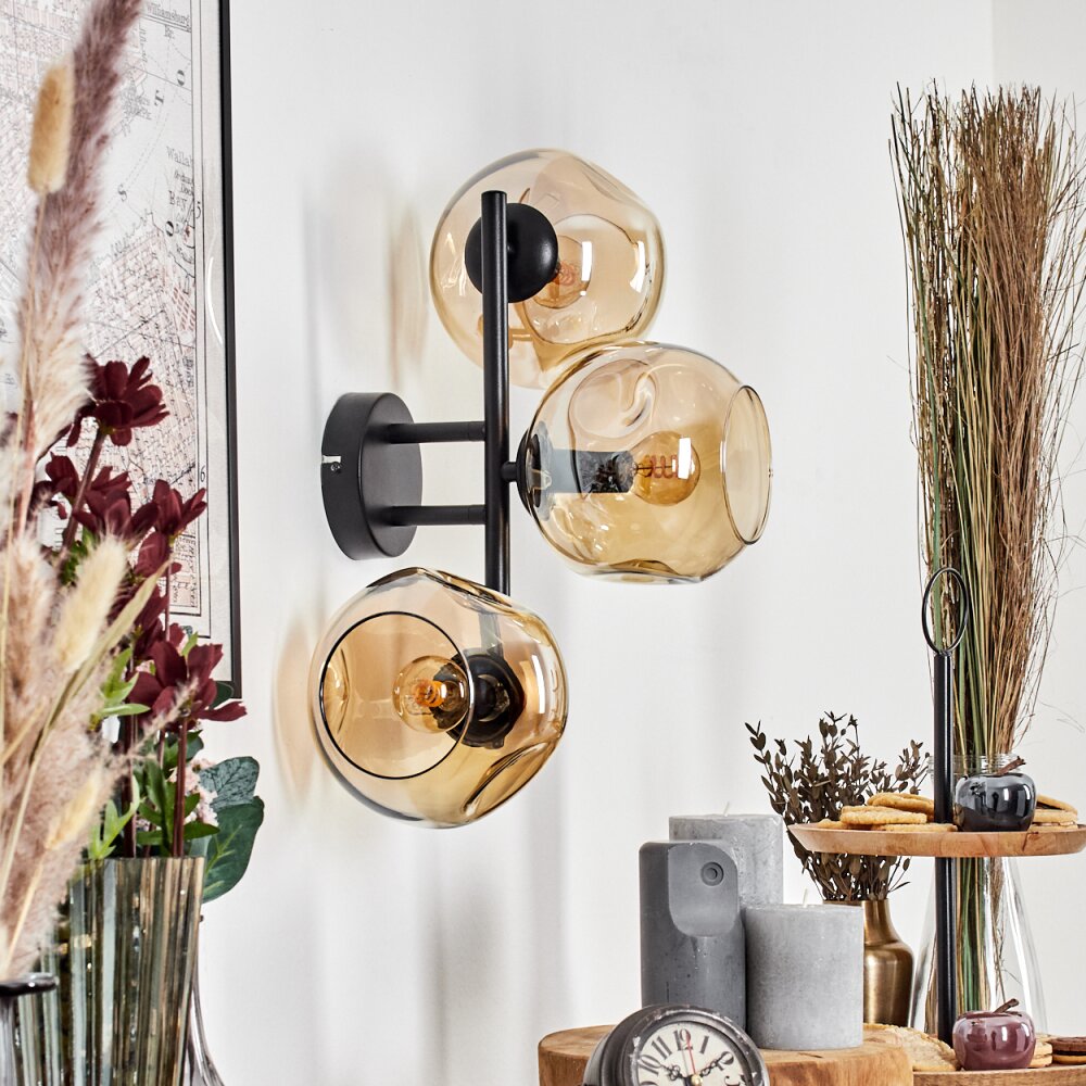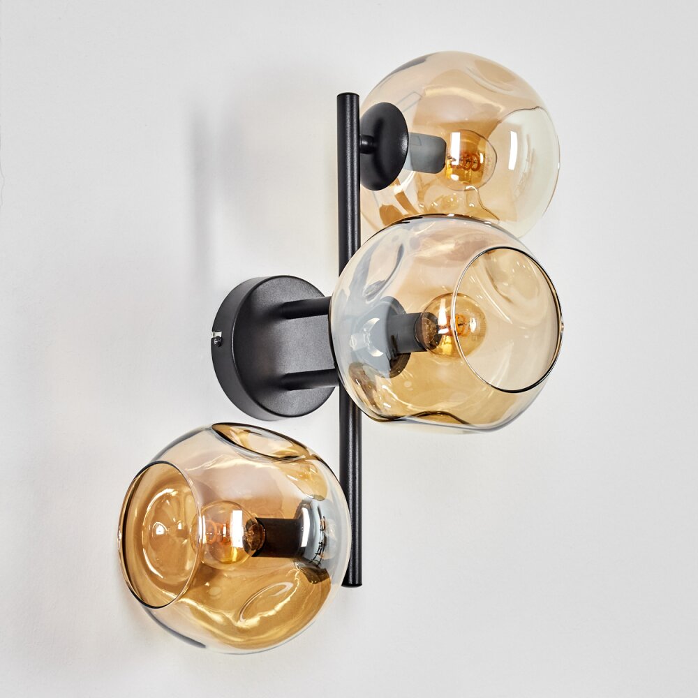 Ripoll Kogellampje, Wandlamp Amber, 3-lichts