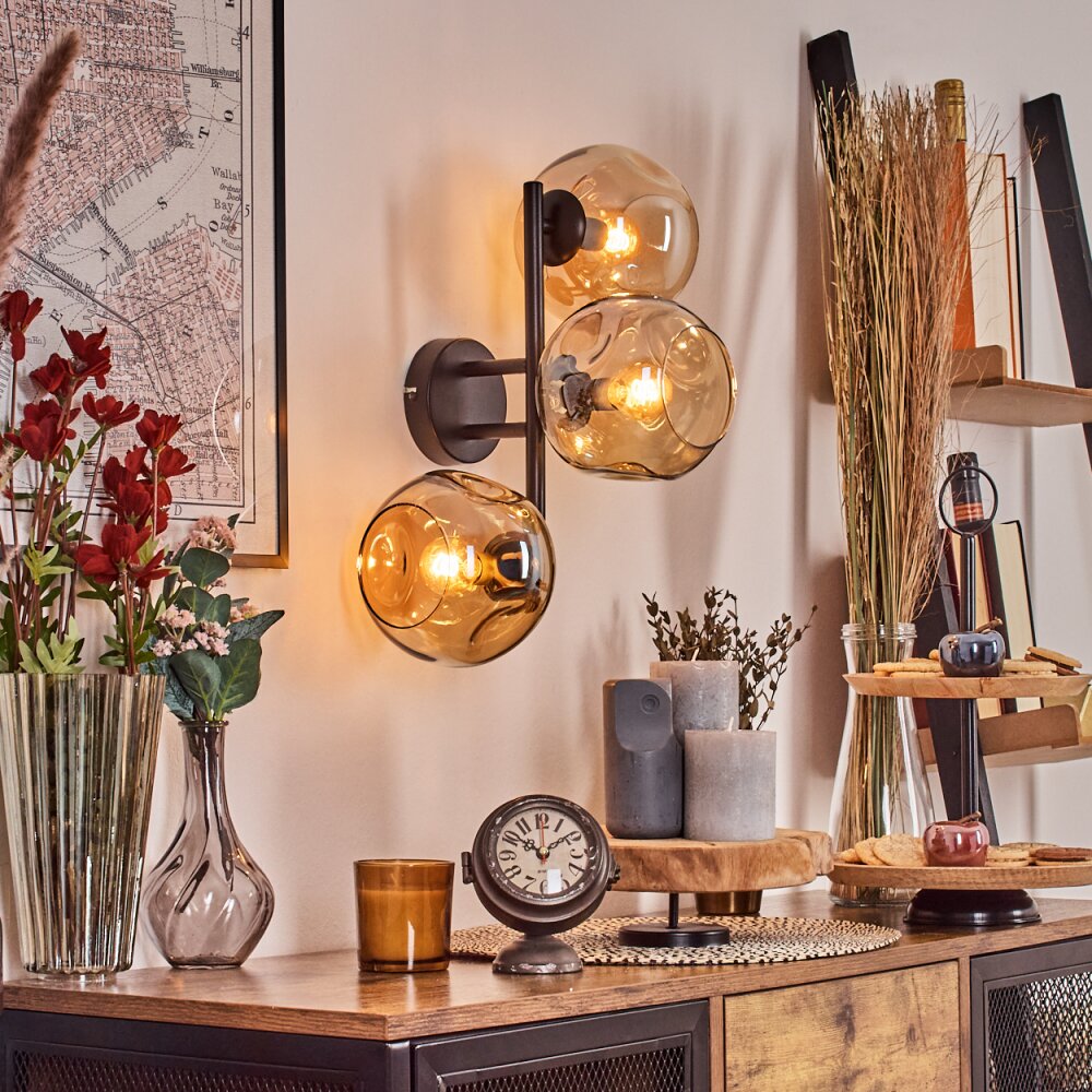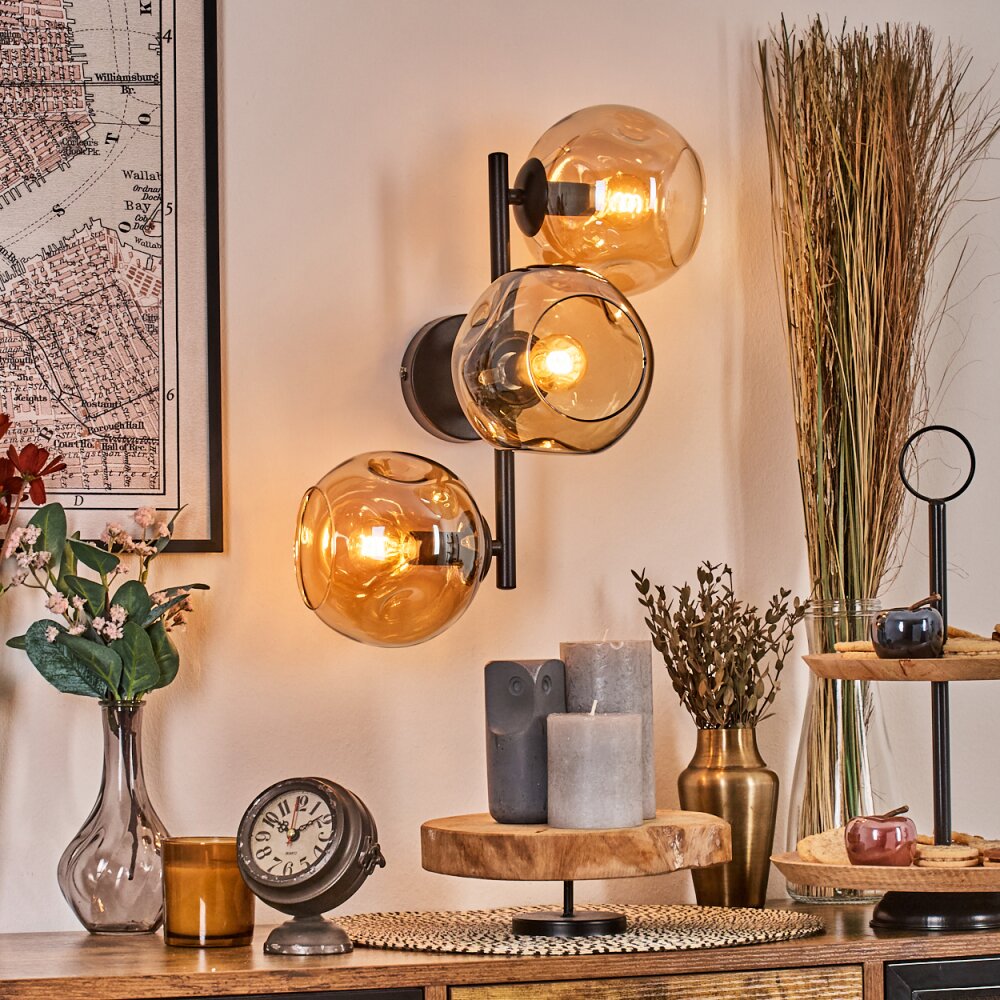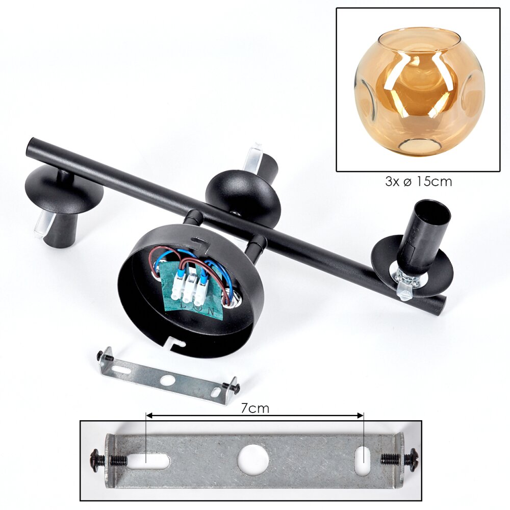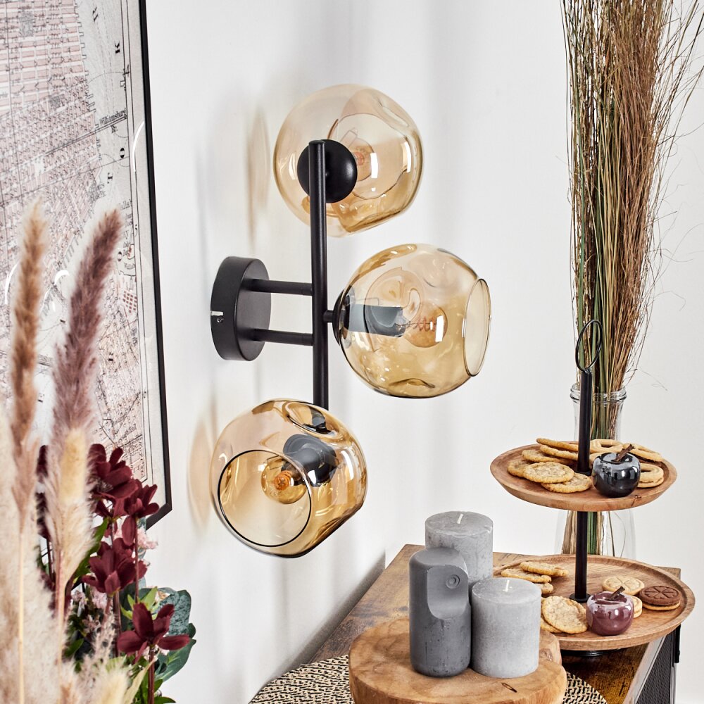 Ripoll Kogellampje, Wandlamp Amber, 3-lichts