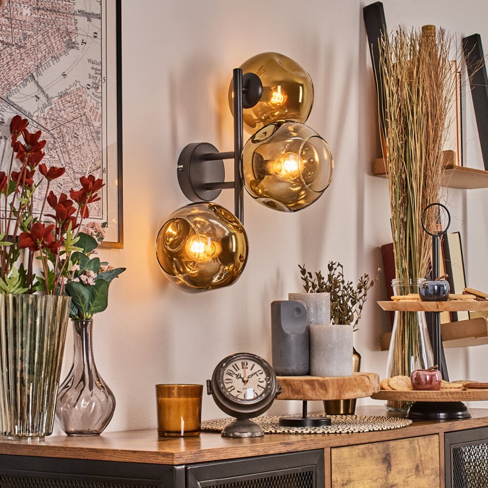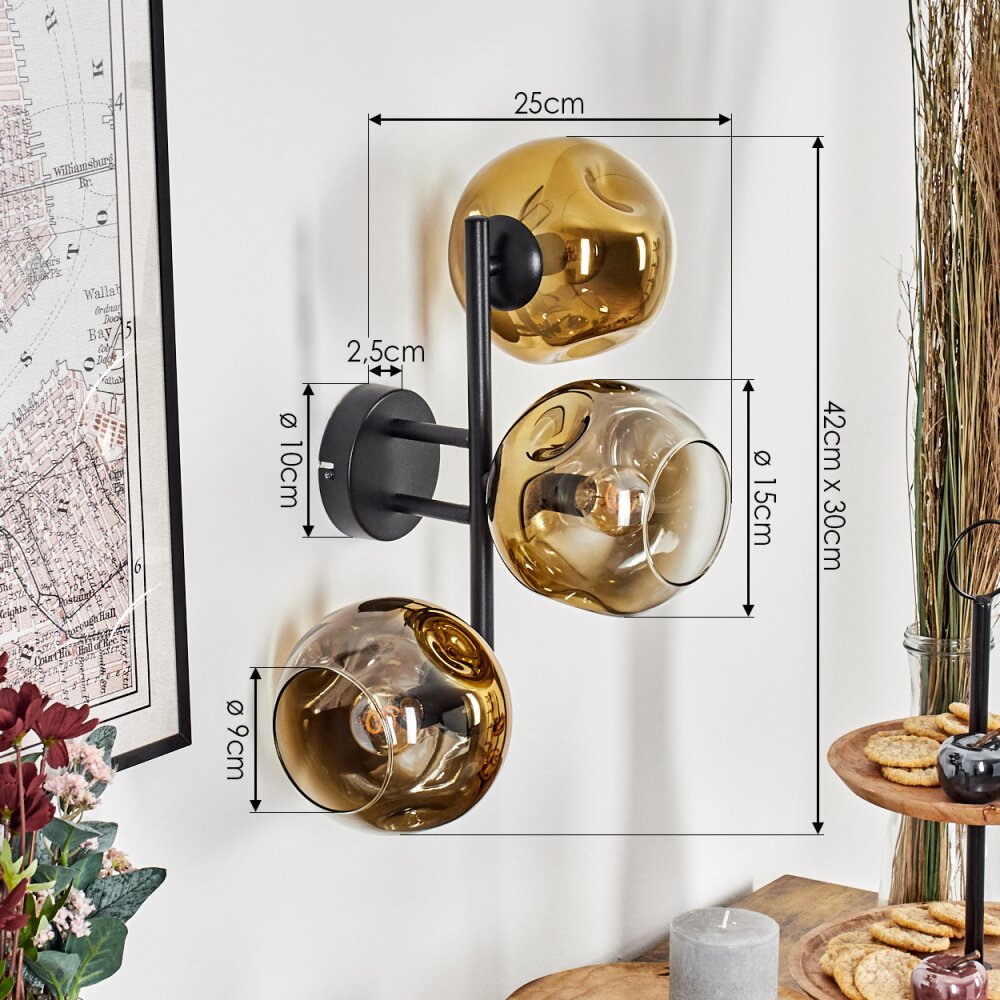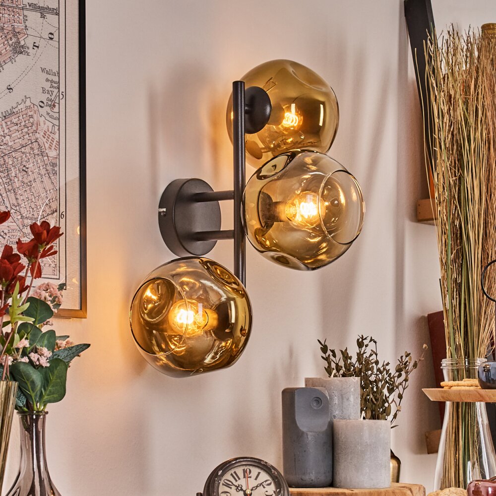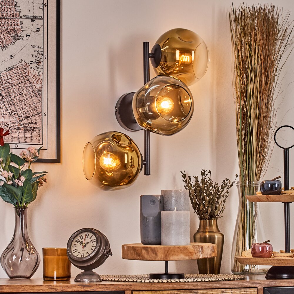Ripoll Kogellampje, Wandlamp Goud, Duidelijk, 3-lichts