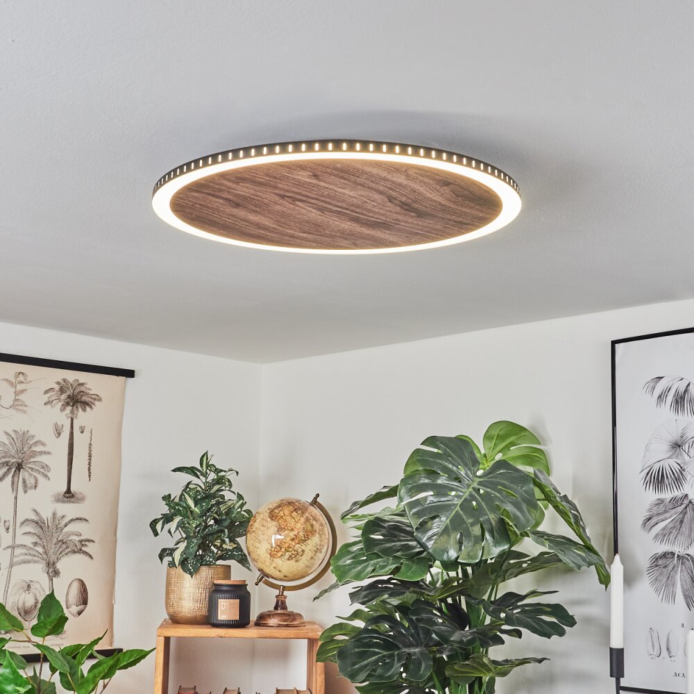 Louea Plafondlamp LED Bruin, houtlook, Zwart, 1-licht