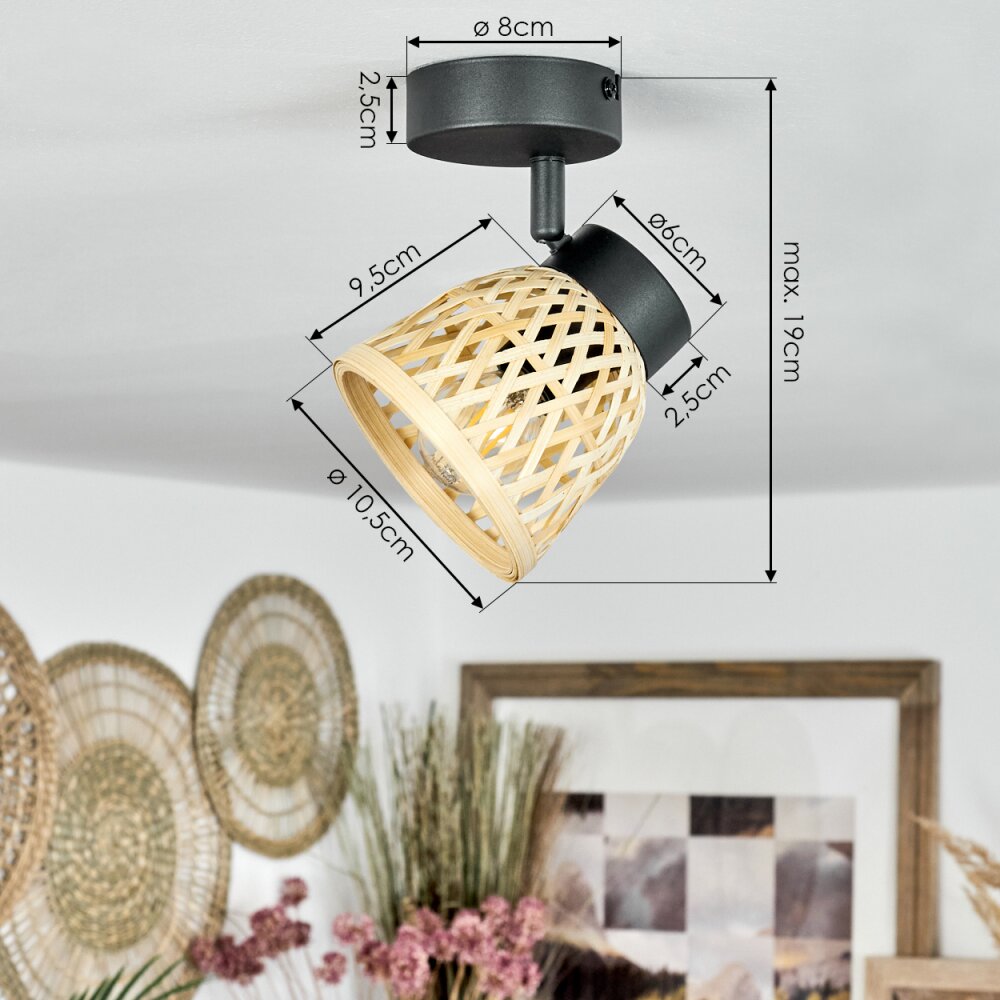 Gesteira Plafondlamp, Plafondspot Natuurlijke kleuren, Zwart, 6-lichts