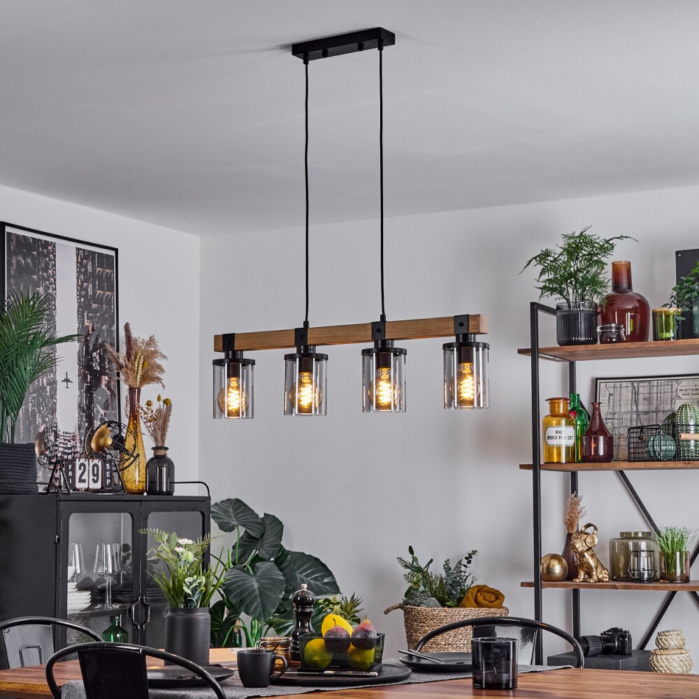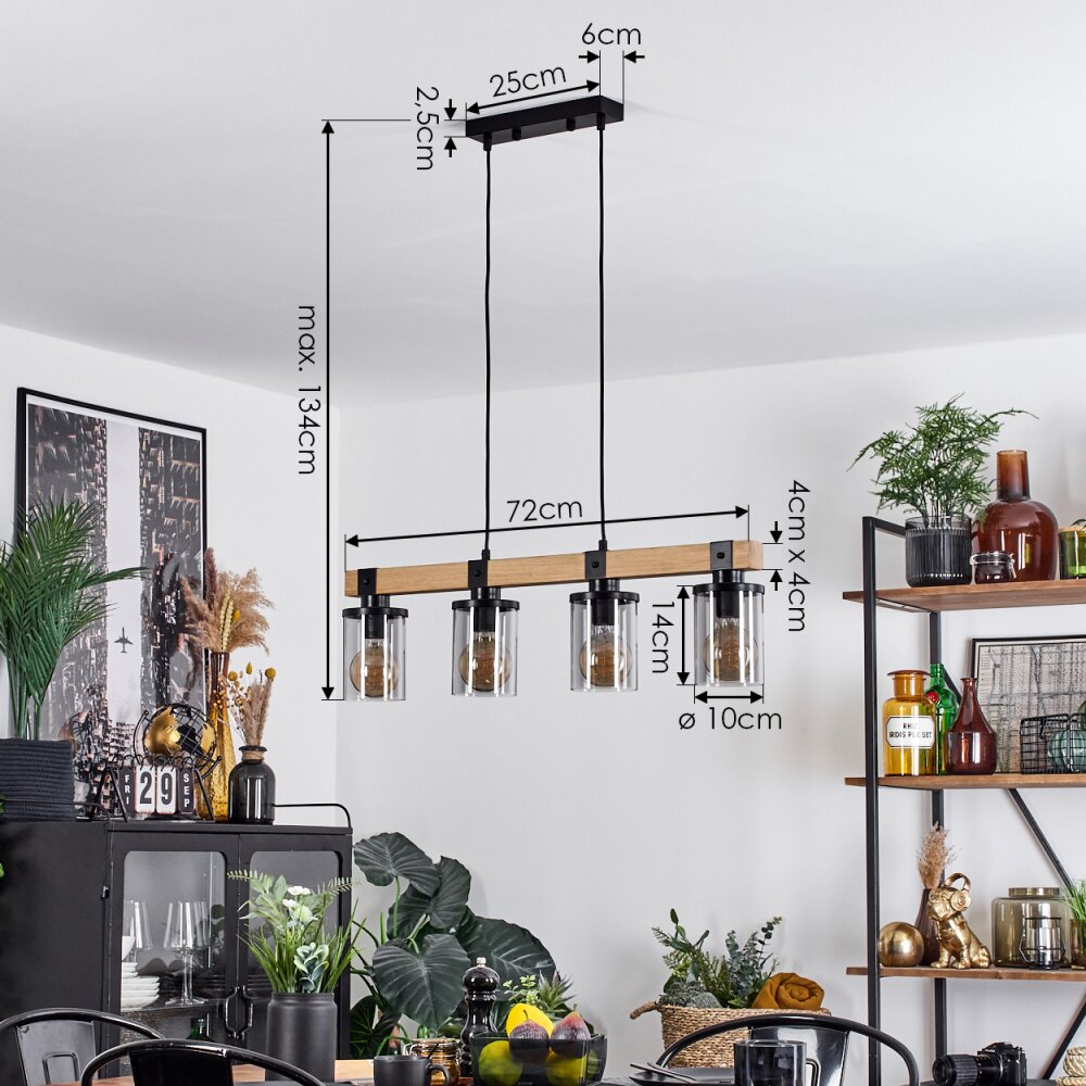 Roxa Hanglamp Hout licht, Zwart, 4-lichts