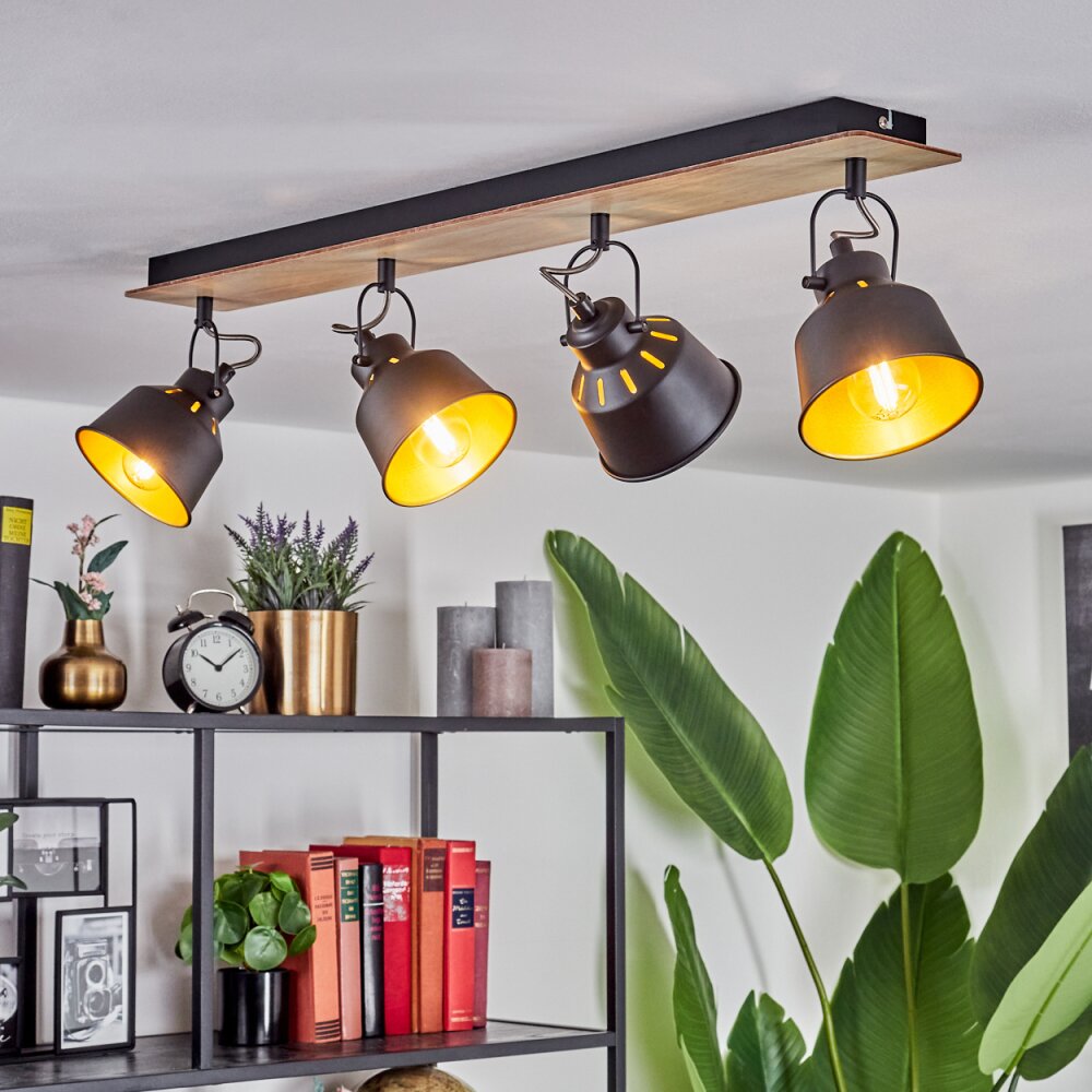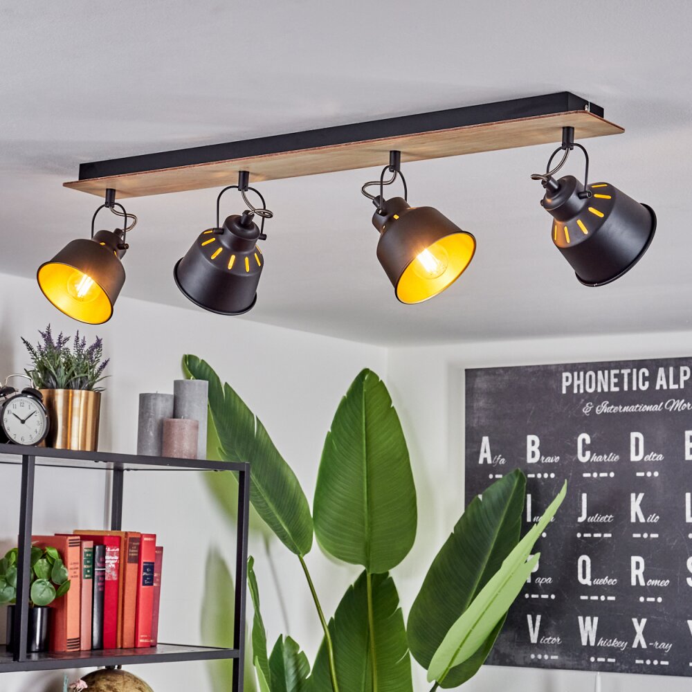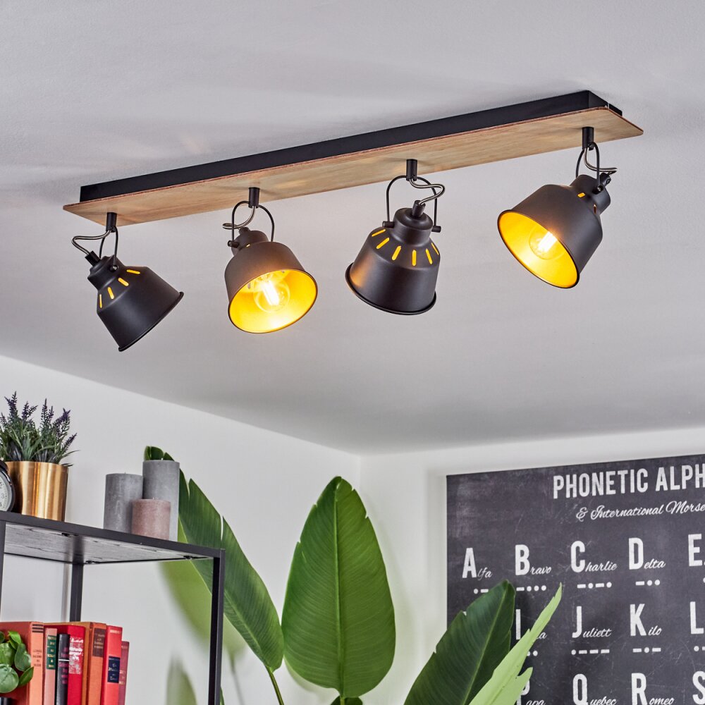 Safari Plafondlamp Chroom, Hout licht, Zwart, 4-lichts