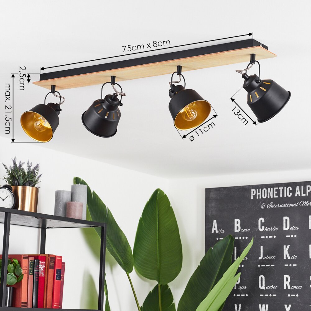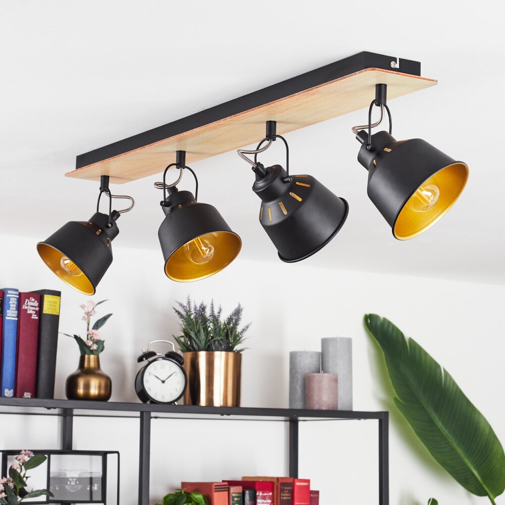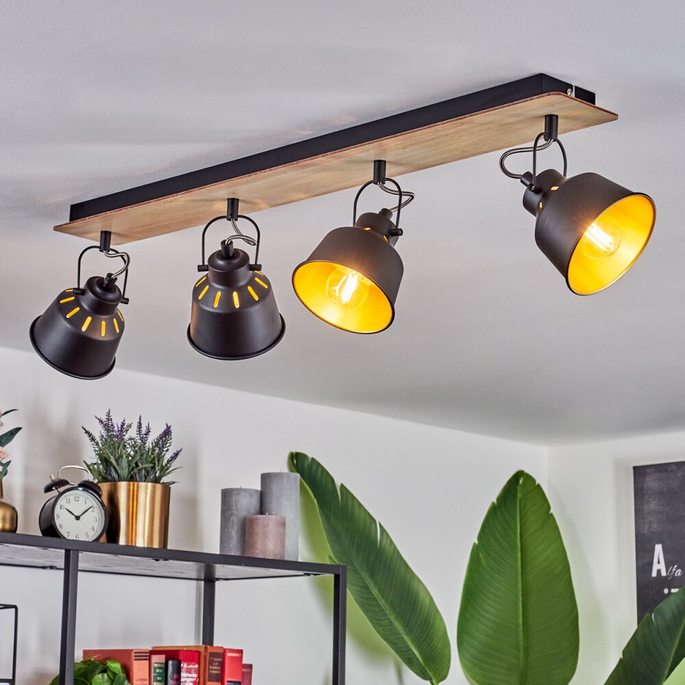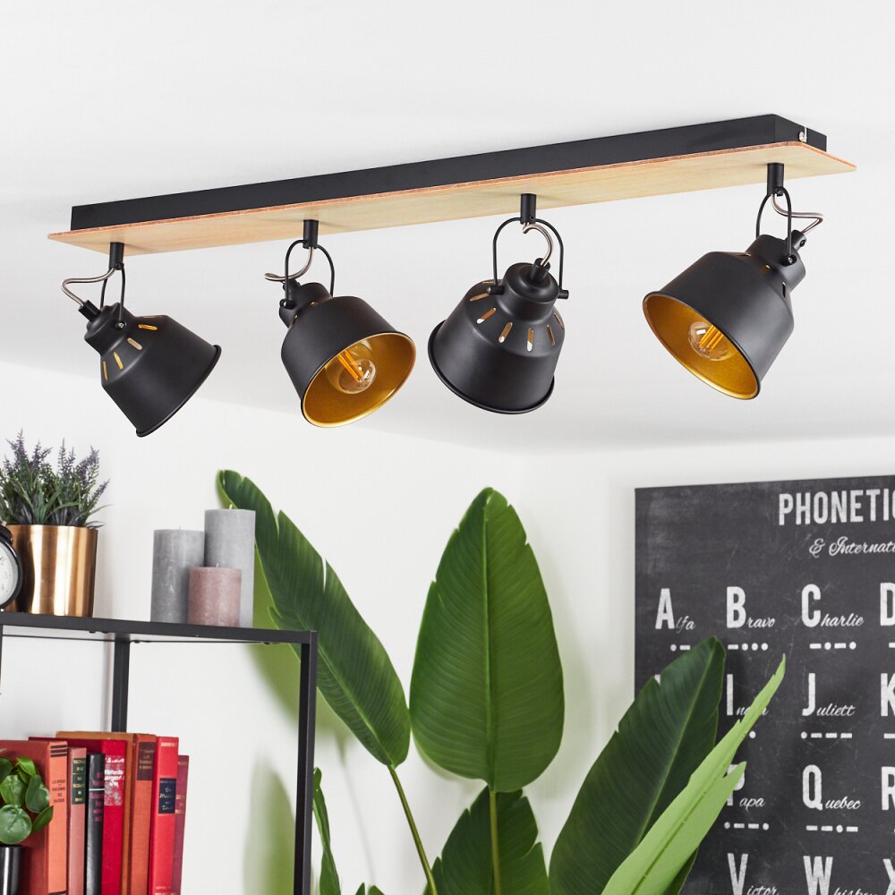 Safari Plafondlamp Chroom, Hout licht, Zwart, 4-lichts