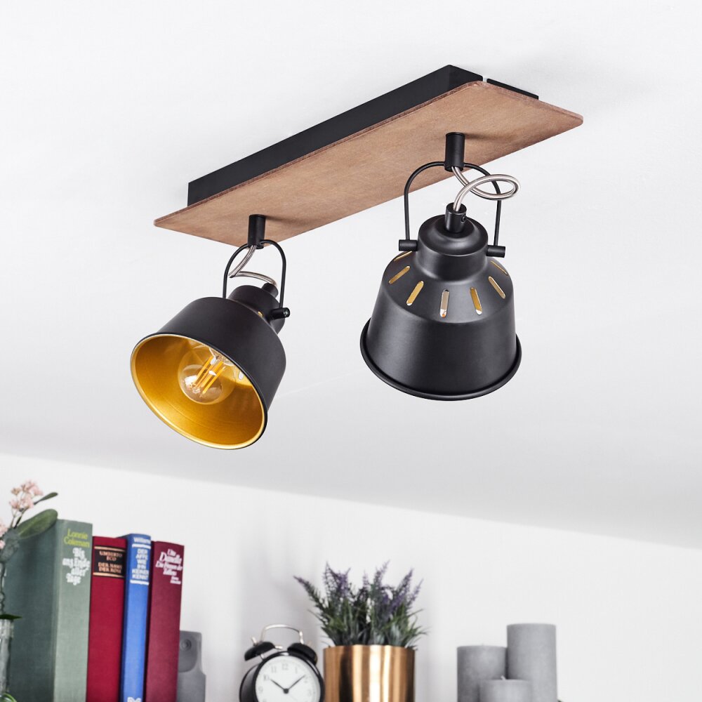 Safari Plafondlamp Chroom, Hout donker, Zwart, 2-lichts