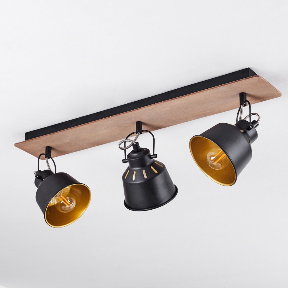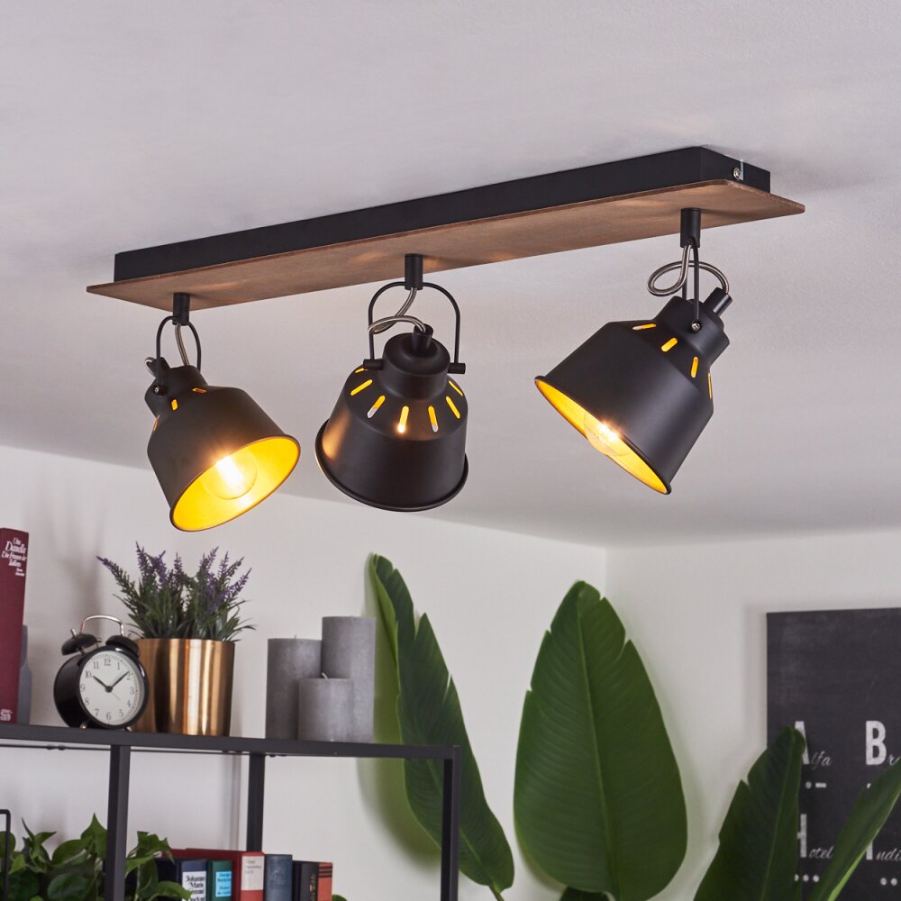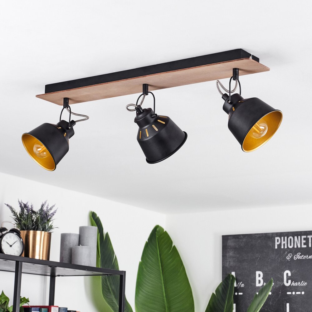 Safari Plafondlamp Chroom, Hout donker, Zwart, 3-lichts