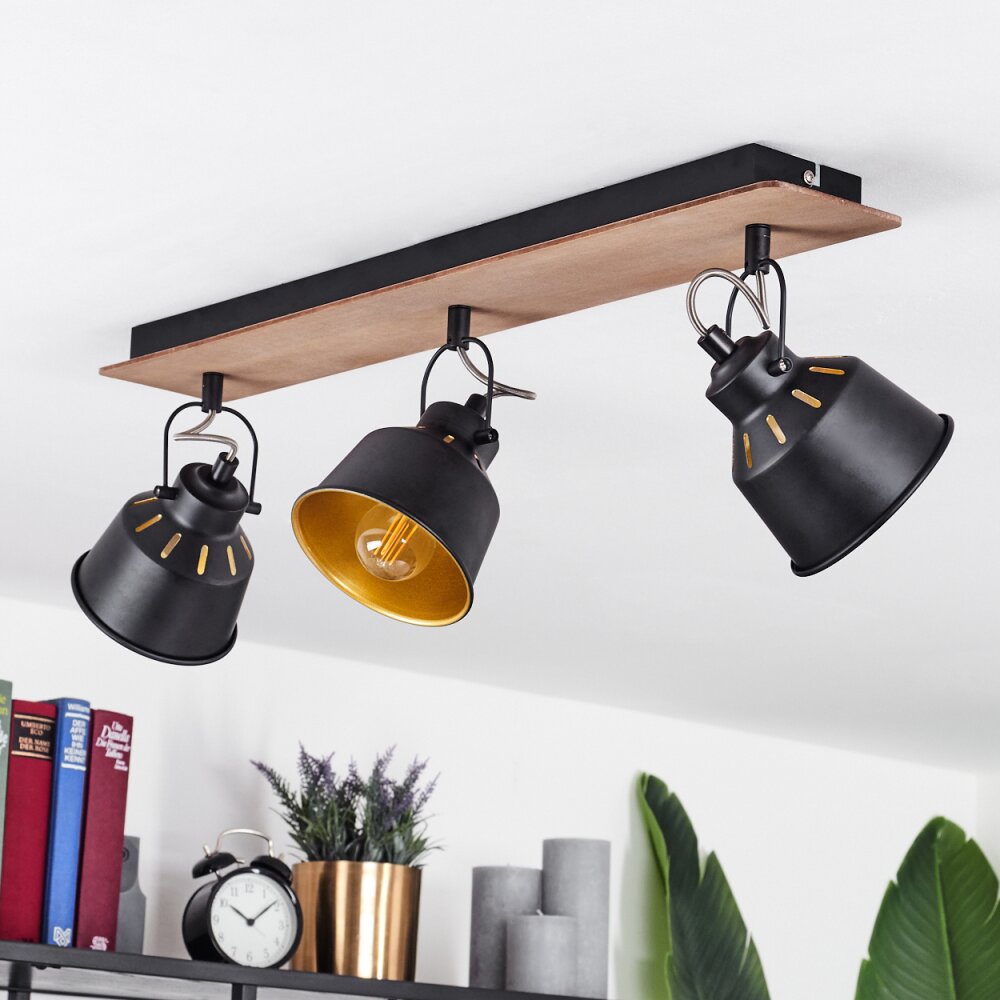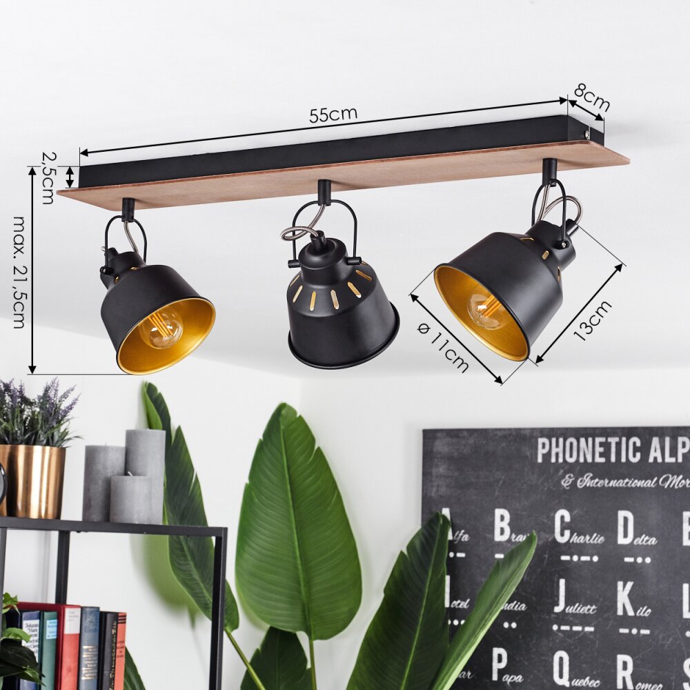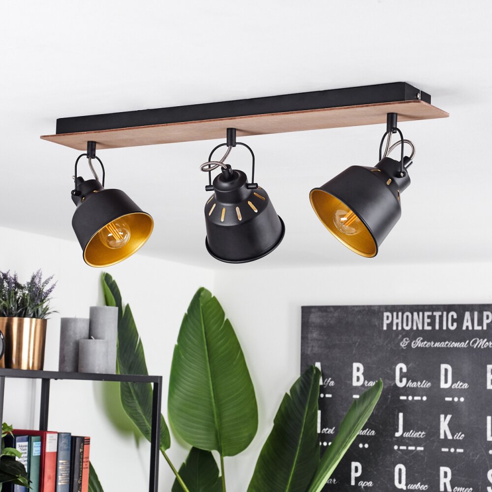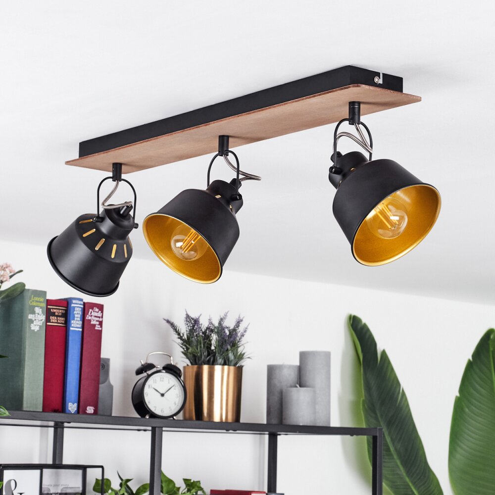 Safari Plafondlamp Chroom, Hout donker, Zwart, 3-lichts