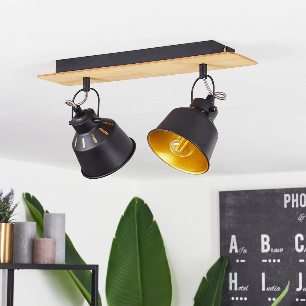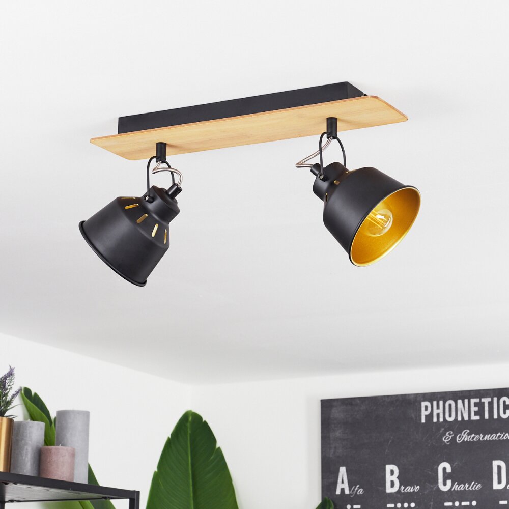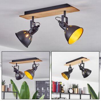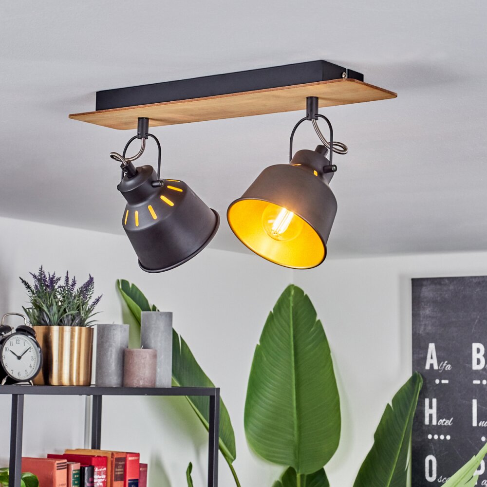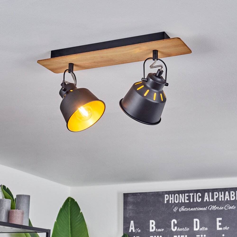Safari Plafondlamp Chroom, Natuurlijke kleuren, Zwart, 2-lichts