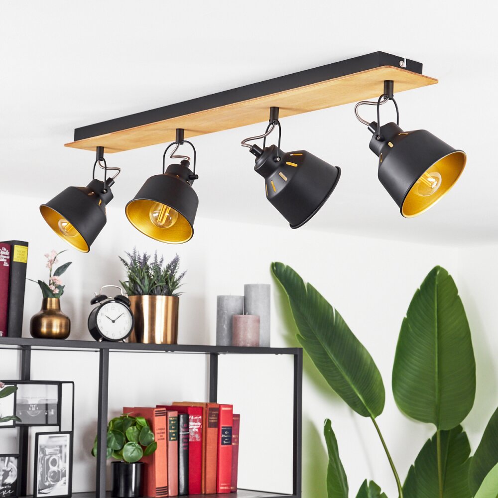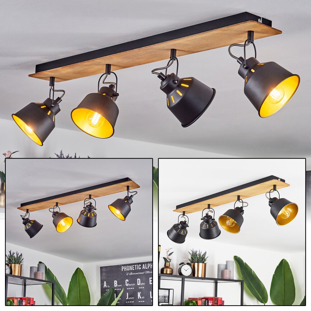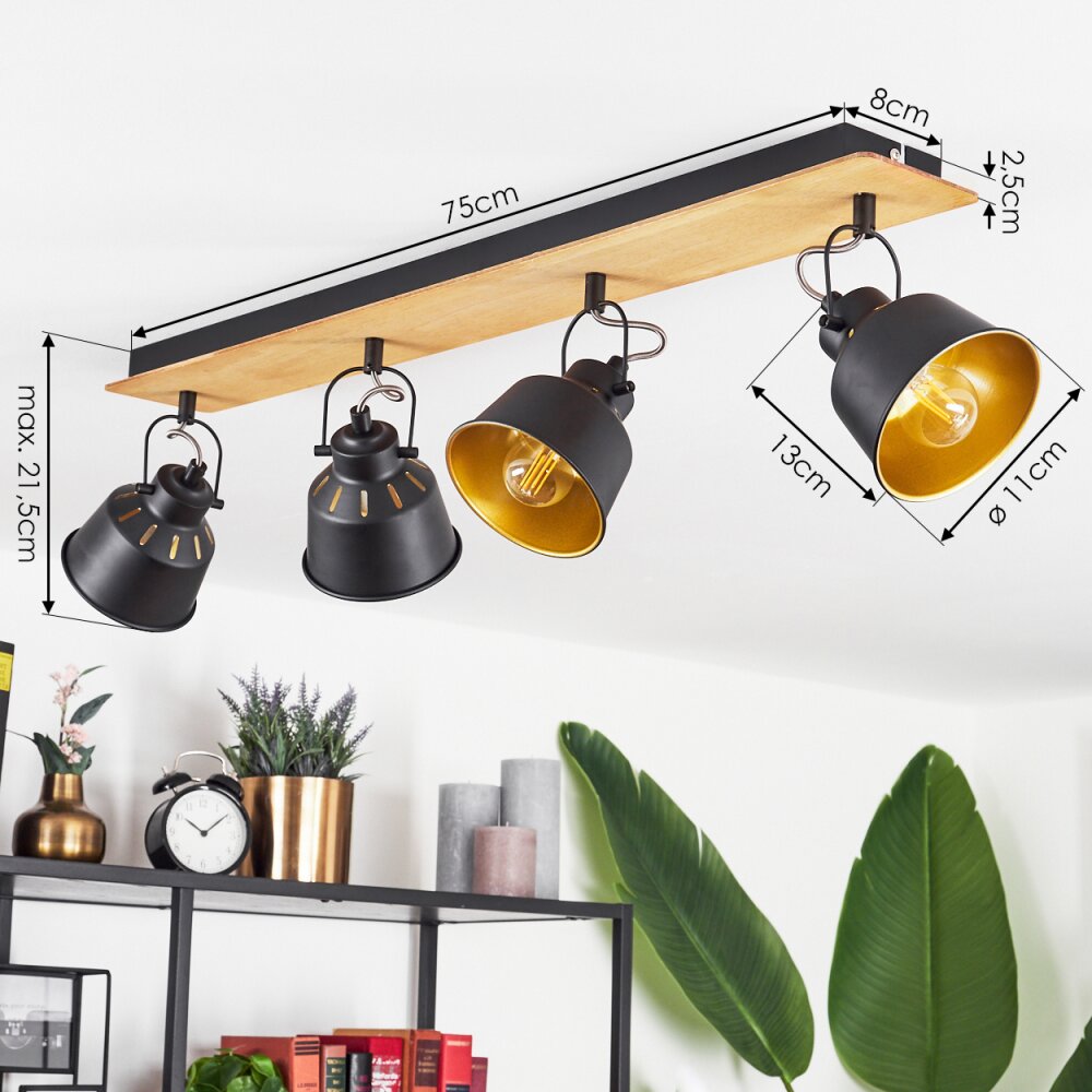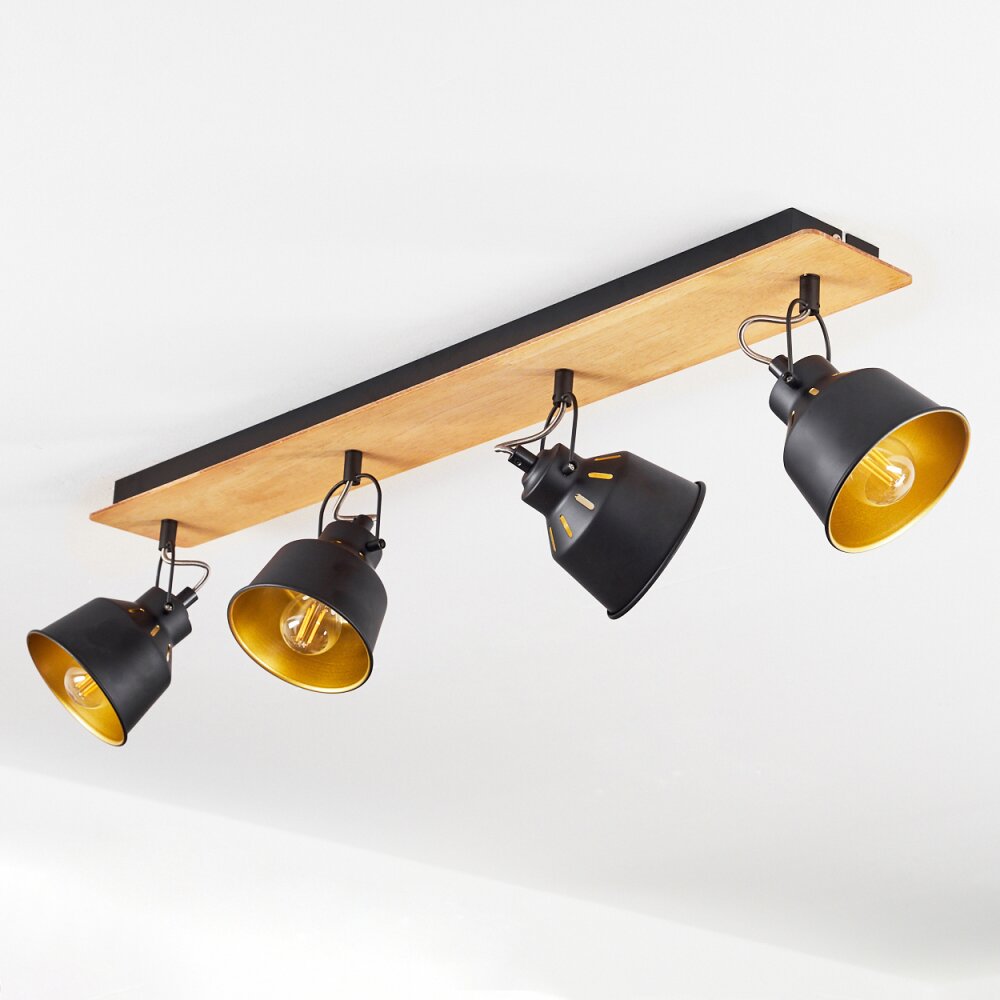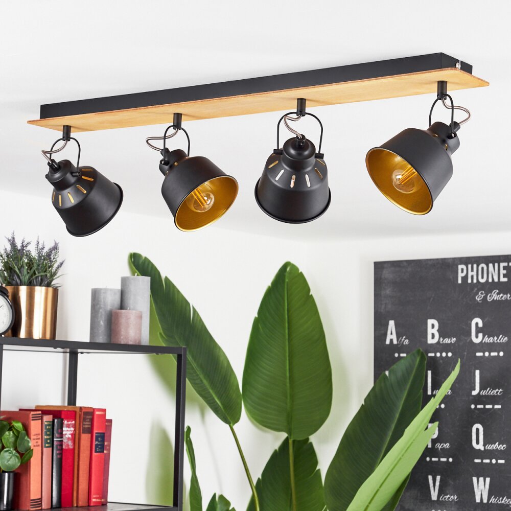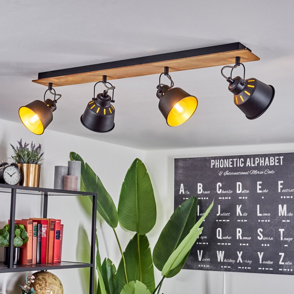 Safari Plafondlamp Chroom, Natuurlijke kleuren, Zwart, 4-lichts