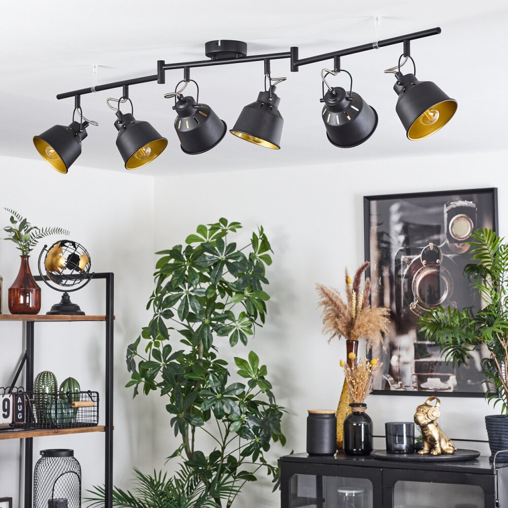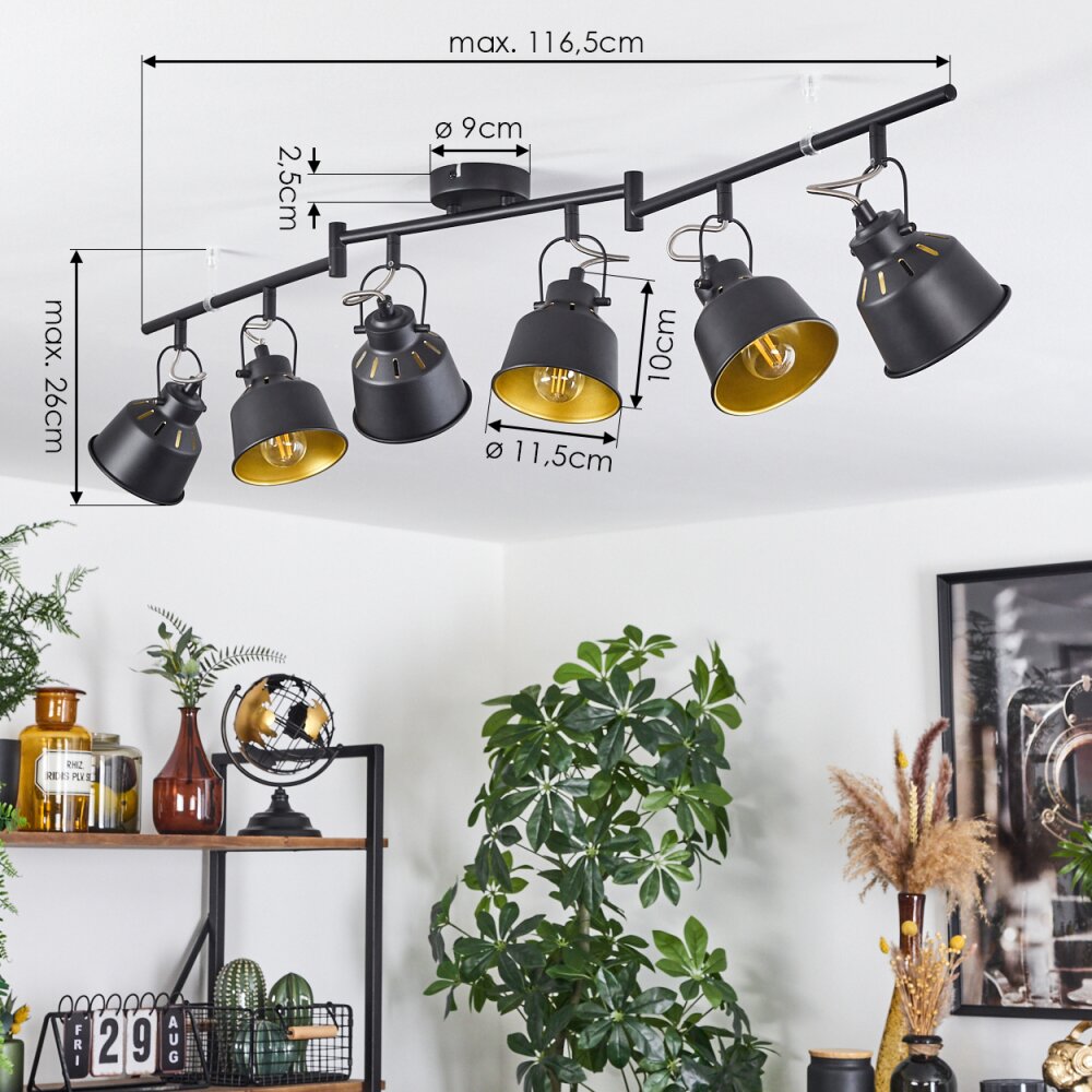 Safari Plafondlamp Chroom, Zwart, 6-lichts