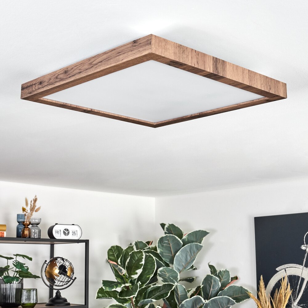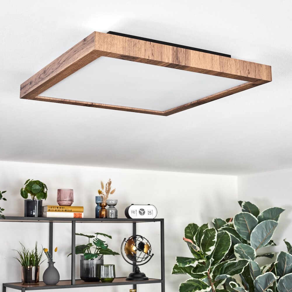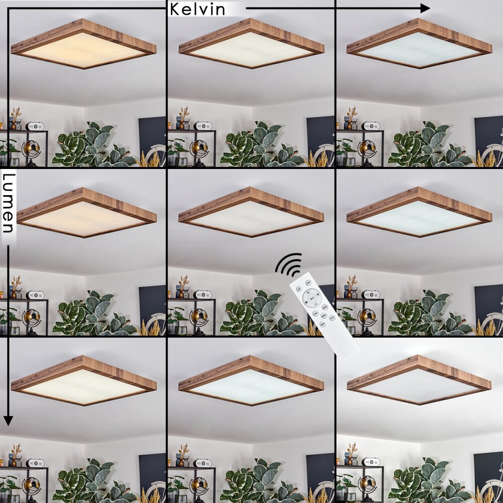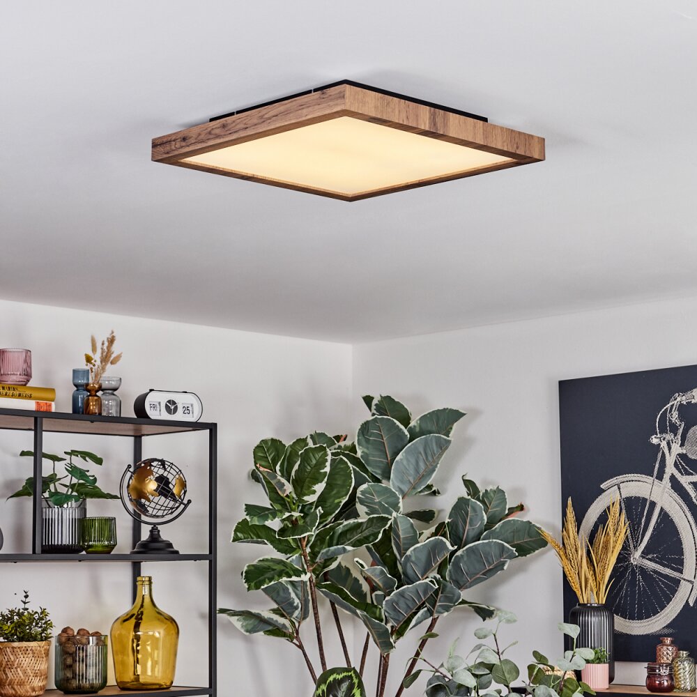 Salmi Plafondlamp, Paneel LED houtlook, Zwart, 1-licht, Afstandsbediening