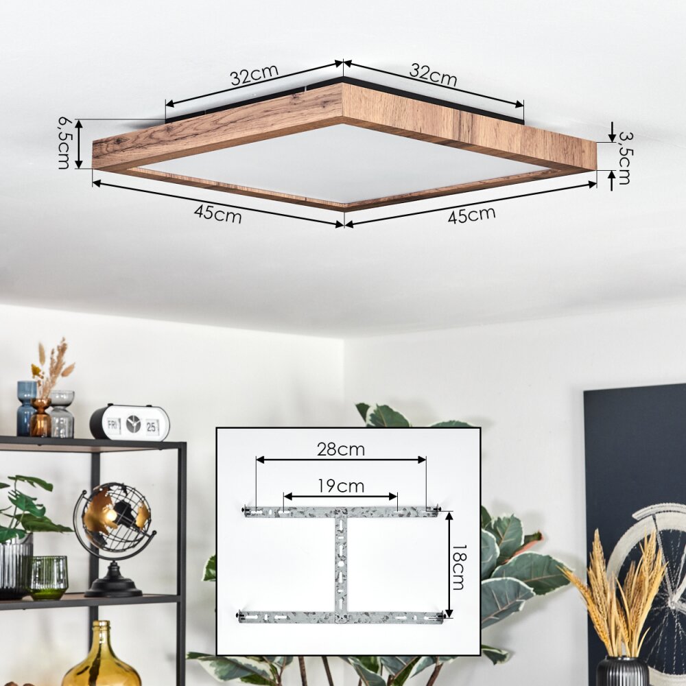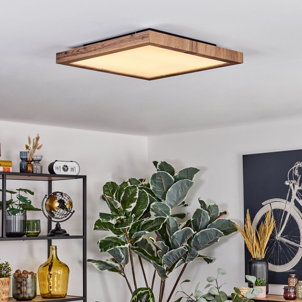 Salmi Plafondlamp, Paneel LED houtlook, Zwart, 1-licht