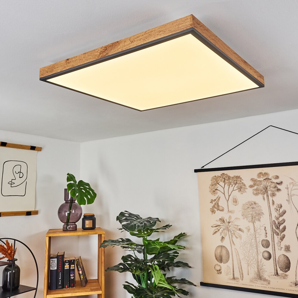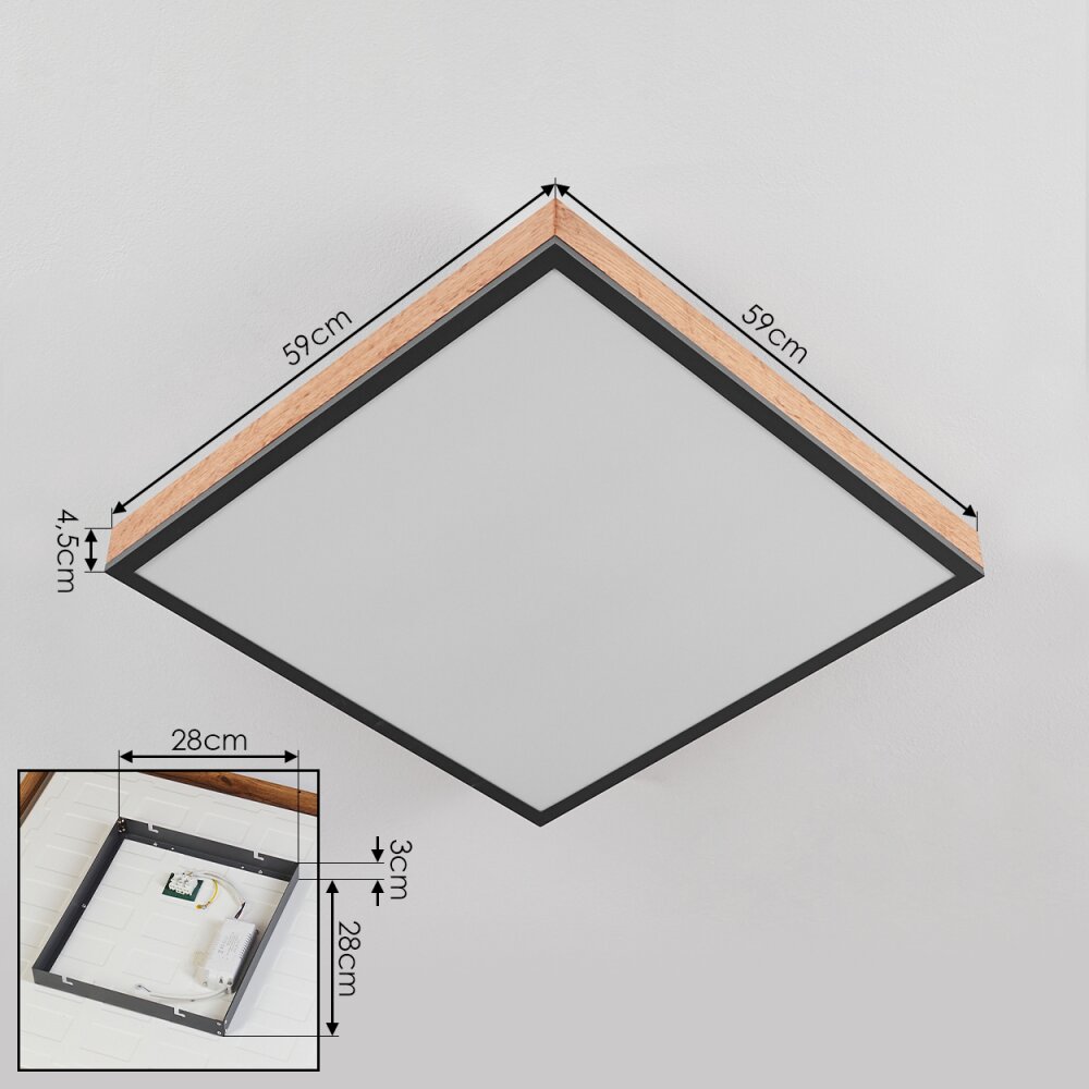 Salmi Plafondpaneel LED houtlook, Zwart, Wit, 1-licht