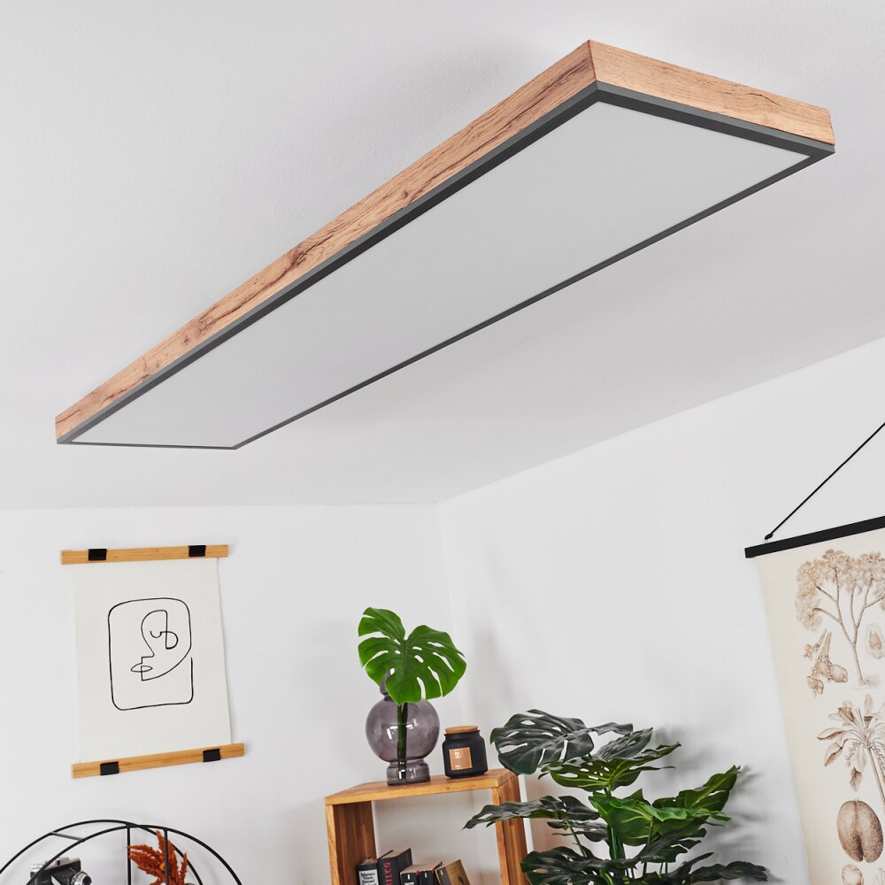 Salmi Plafondpaneel LED houtlook, Zwart, Wit, 1-licht
