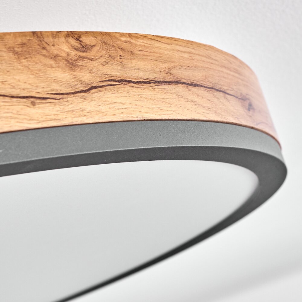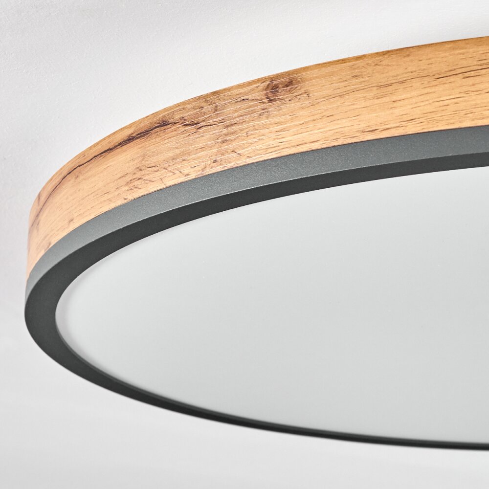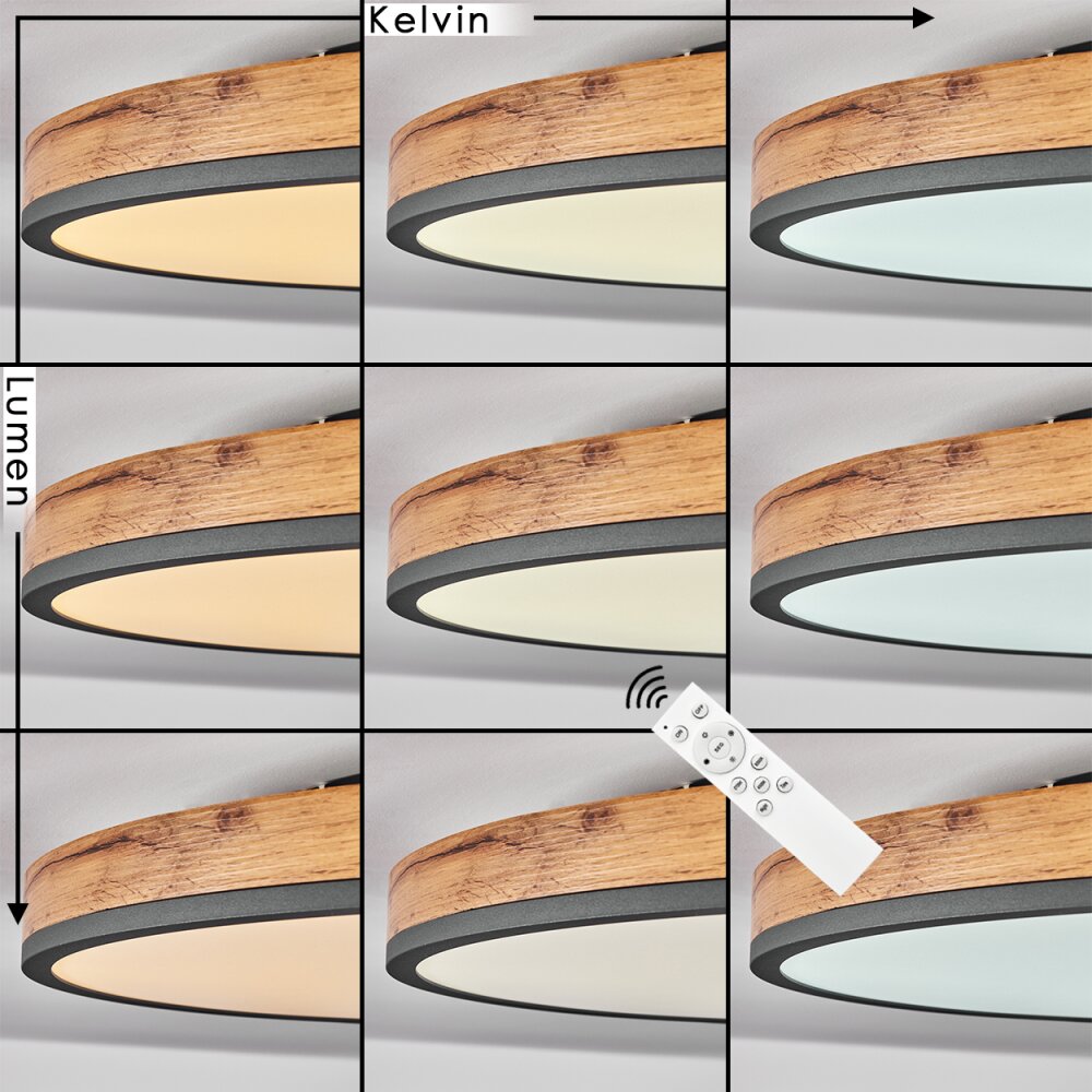 Salmi Plafondpaneel LED Antraciet, Bruin, houtlook, Zwart, 1-licht, Afstandsbediening
