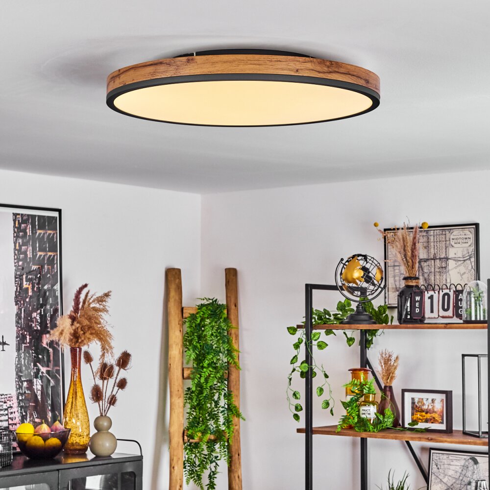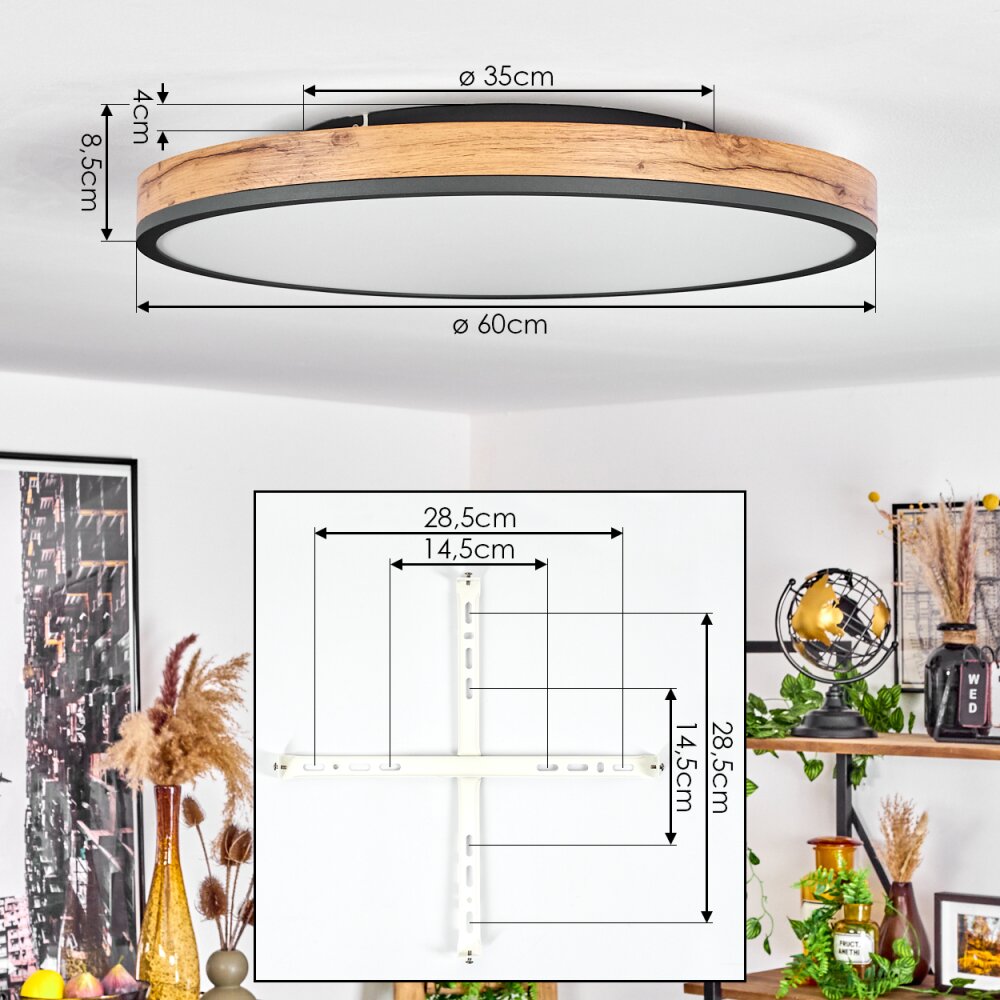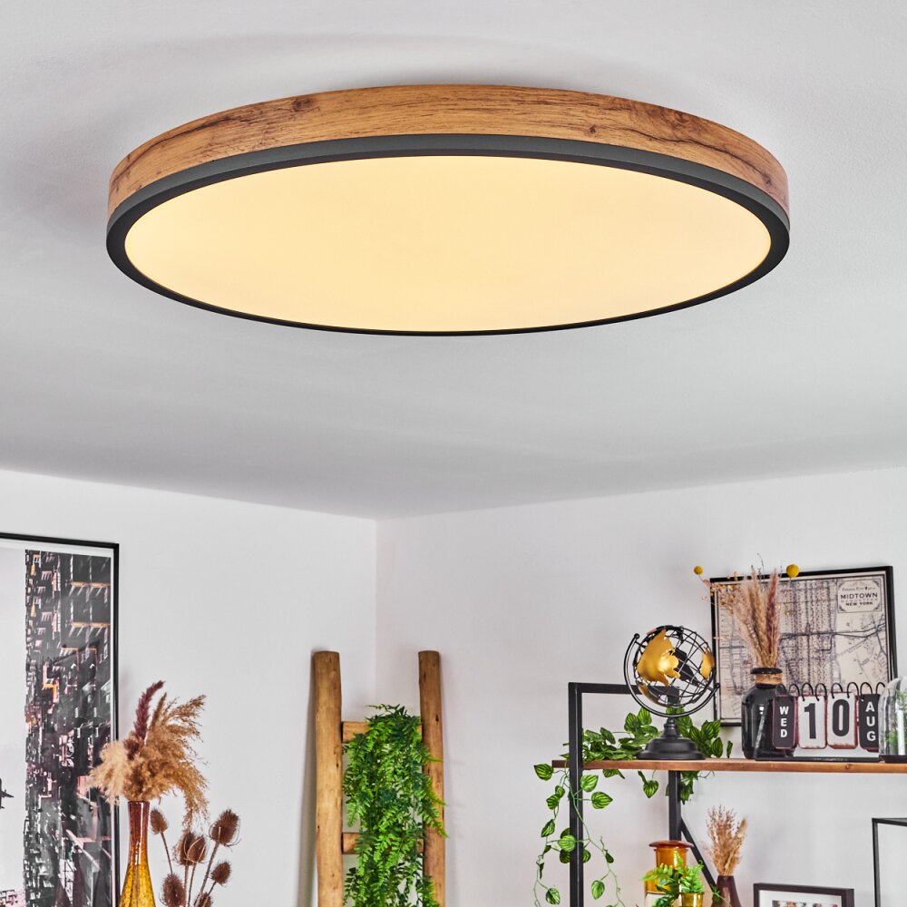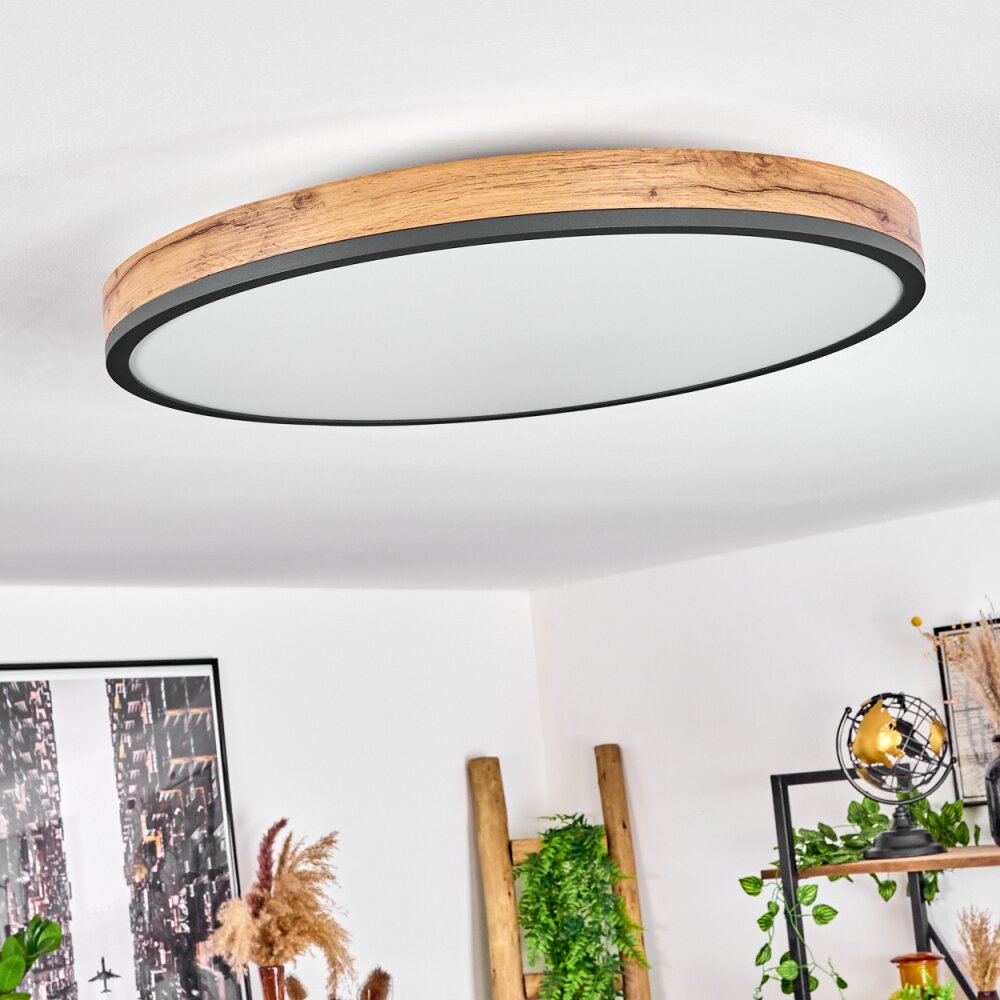 Salmi Plafondpaneel LED Antraciet, Bruin, houtlook, Zwart, 1-licht, Afstandsbediening