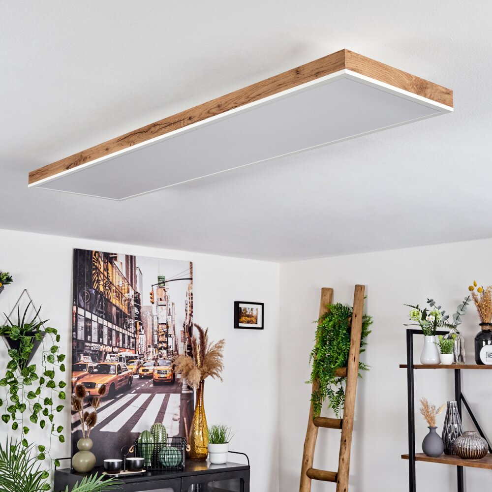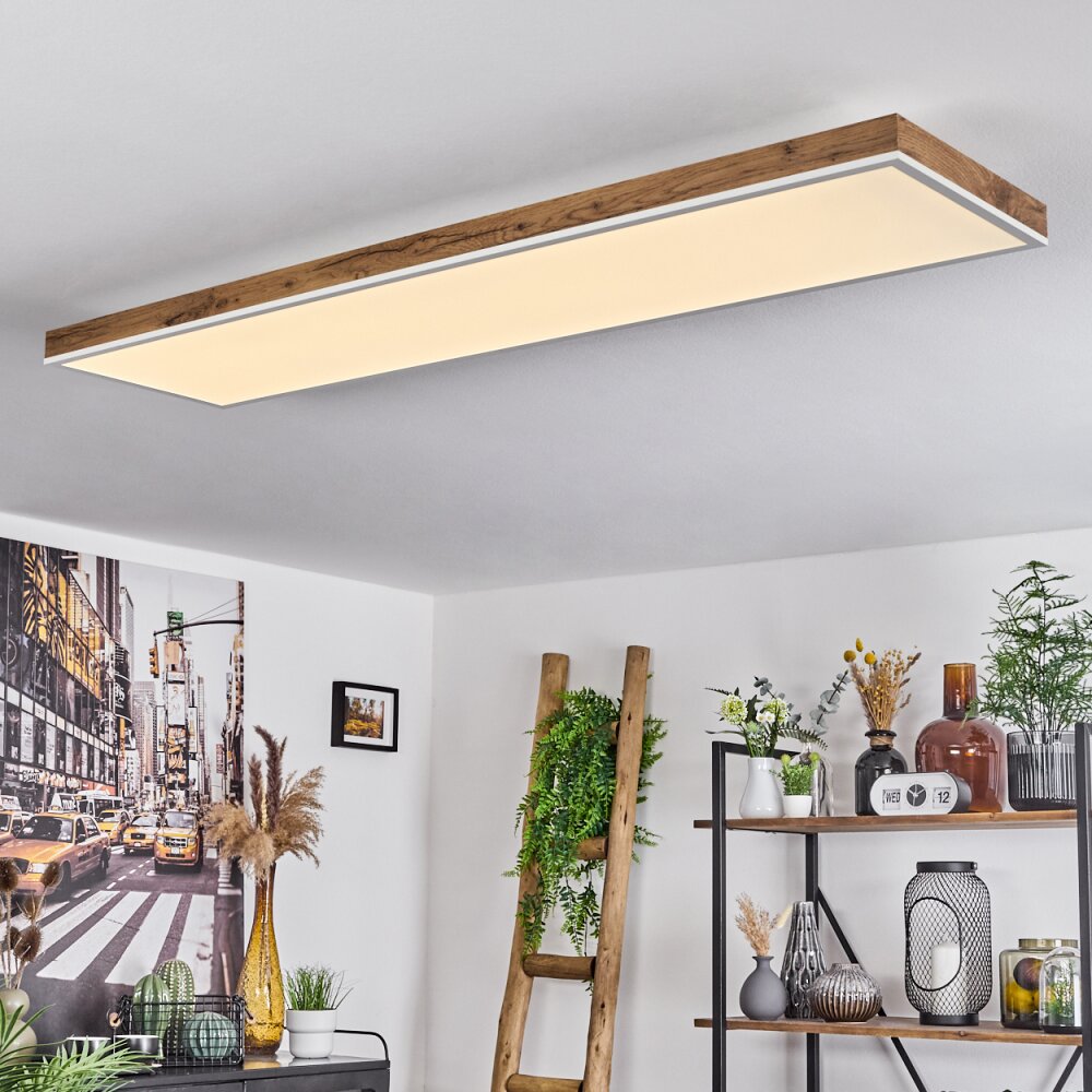 Salmi Plafondpaneel LED Bruin, houtlook, Wit, 1-licht, Afstandsbediening