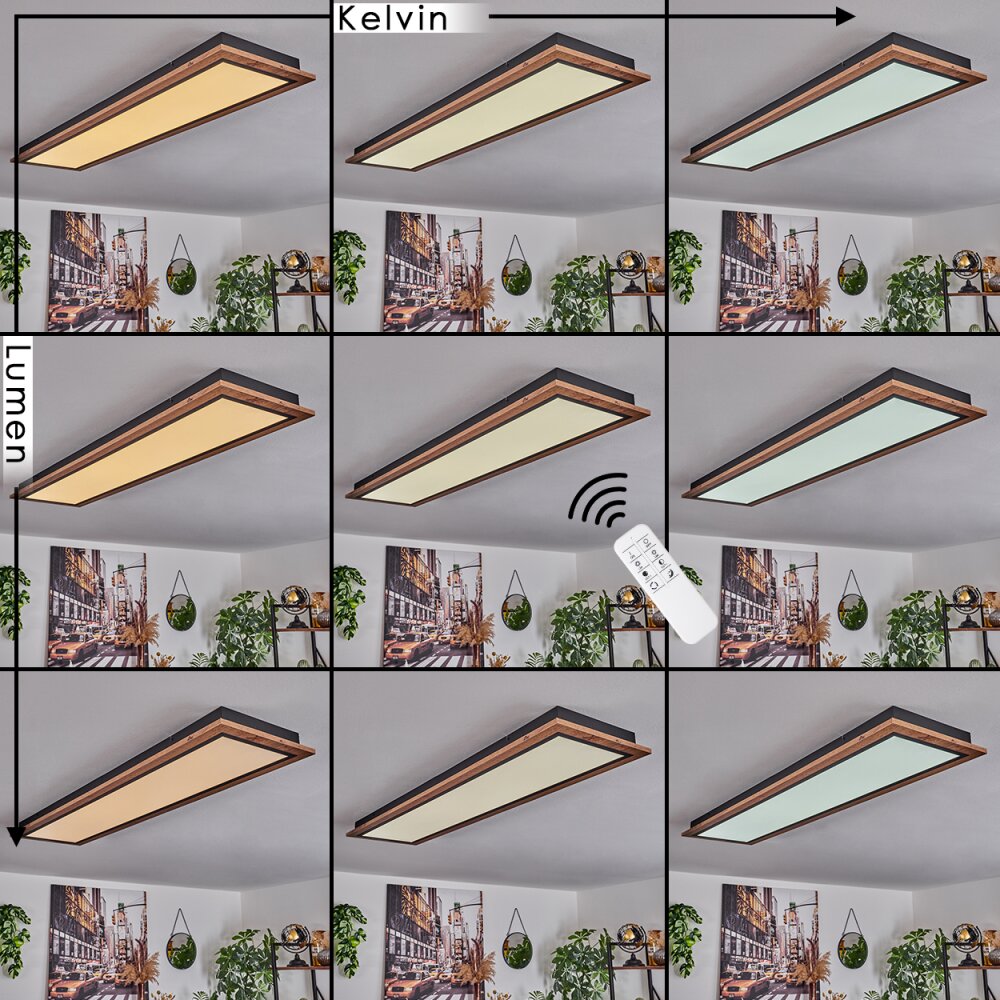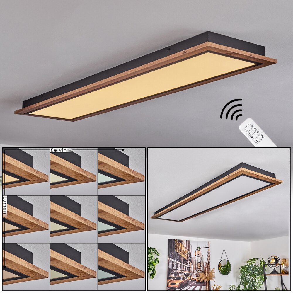 Salmi Plafondpaneel LED houtlook, 1-licht, Afstandsbediening