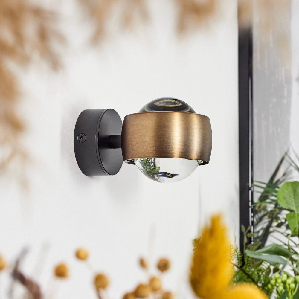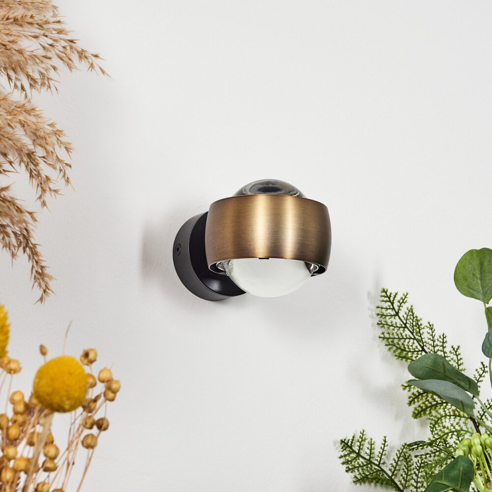 Sapri Muurlamp Oud messing, Zwart, 1-licht
