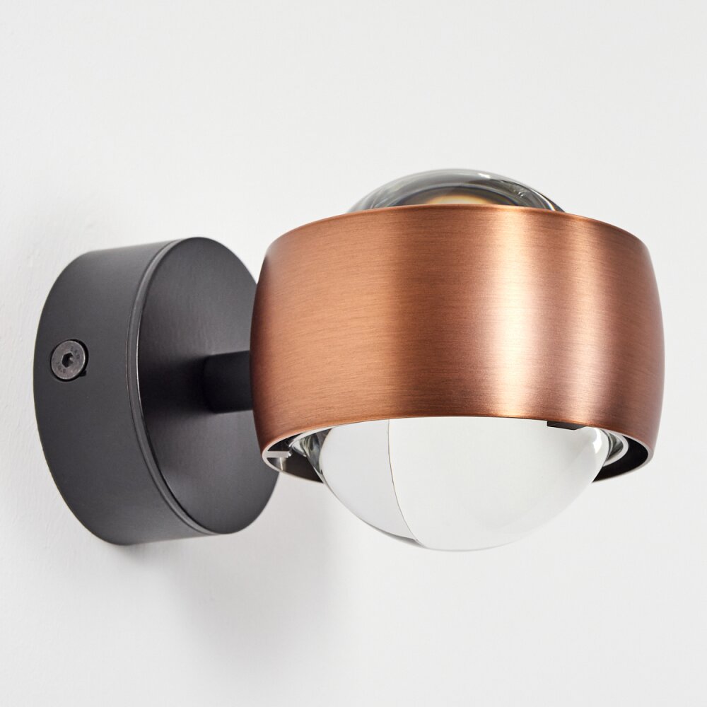 Sapri Muurlamp Koperkleurig, Zwart, 1-licht