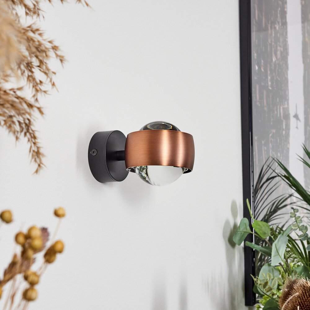 Sapri Muurlamp Koperkleurig, Zwart, 1-licht