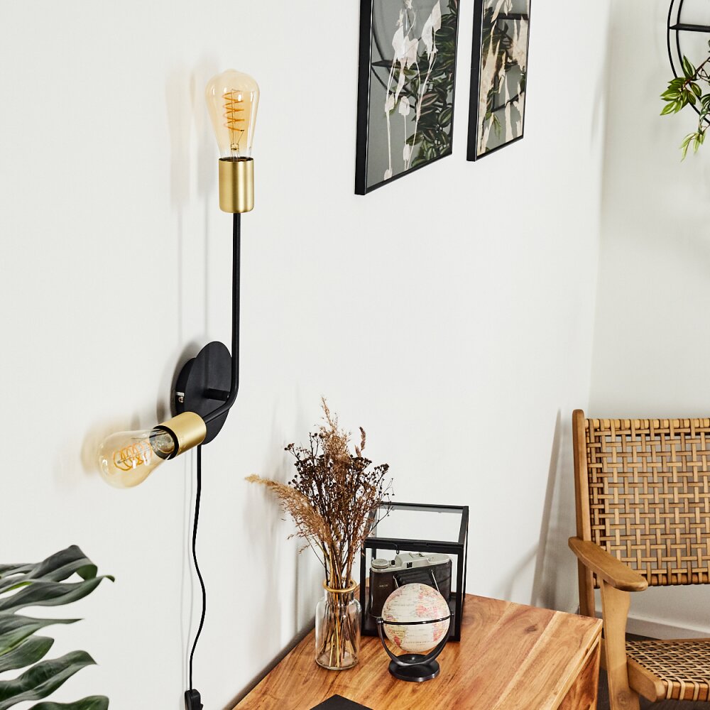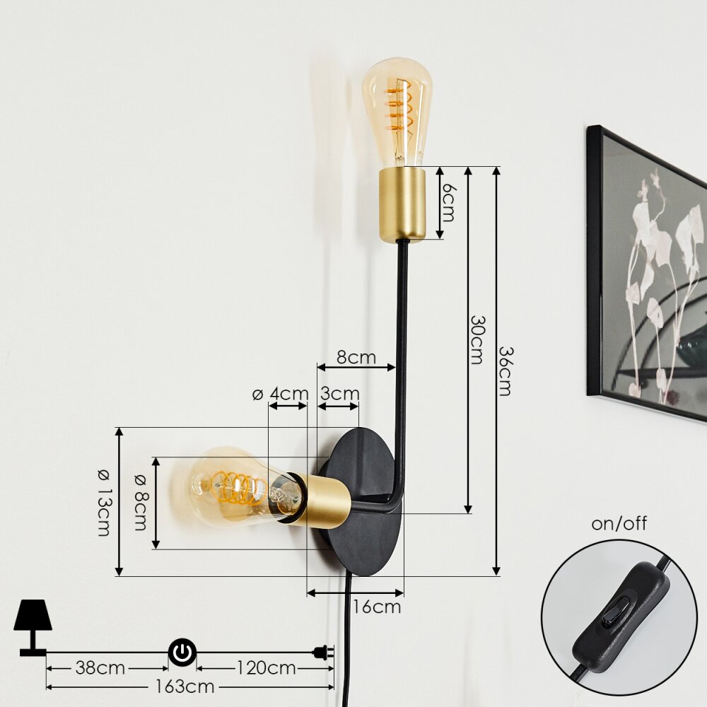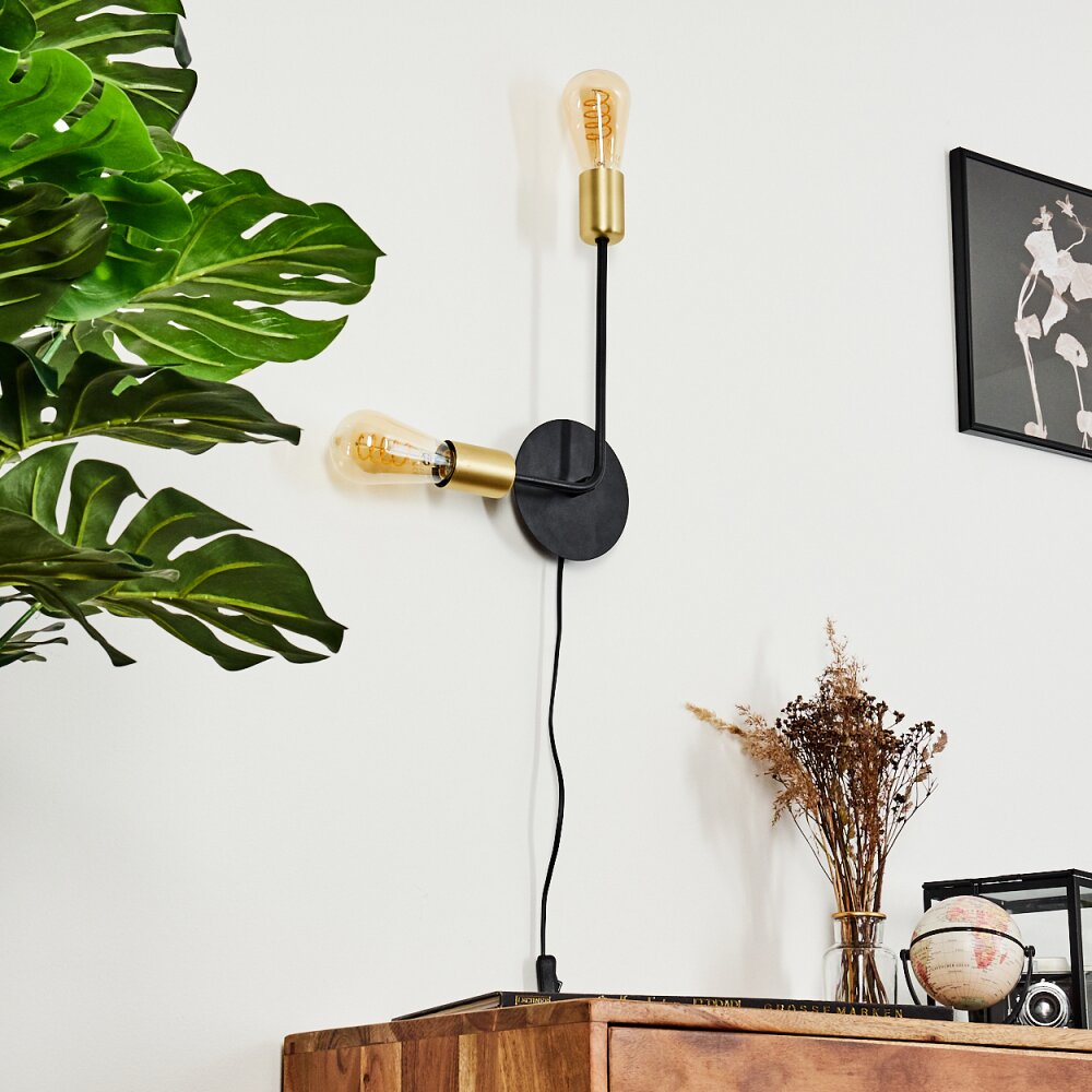 Sattons Muurlamp Messing, Zwart, 2-lichts