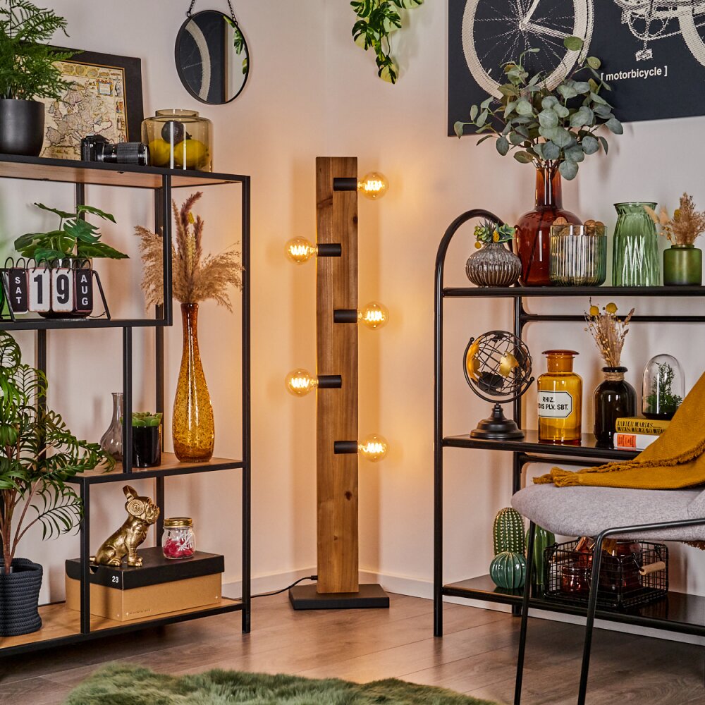 Schanis Staande lamp Natuurlijke kleuren, Zwart, 5-lichts