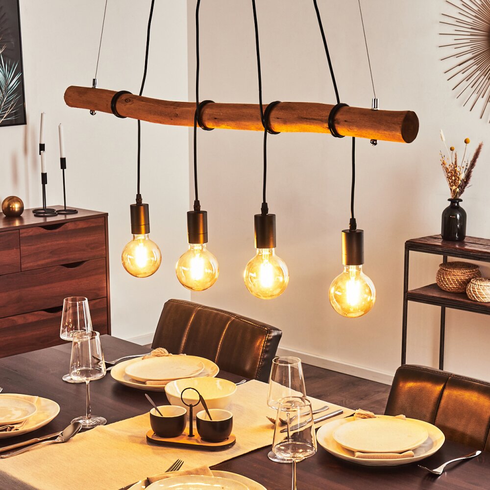 Seegaard Hanglamp Hout licht, Zwart, 4-lichts