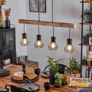 Seegaard Hanglamp Hout licht, Zwart, 4-lichts