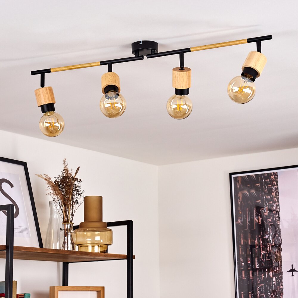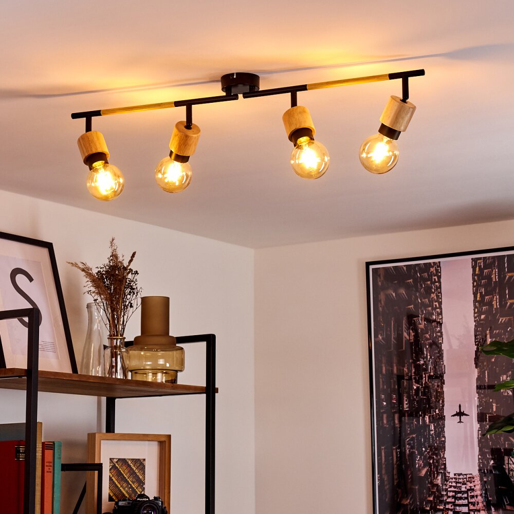 Sezze Plafondlamp Hout licht, Zwart, 4-lichts