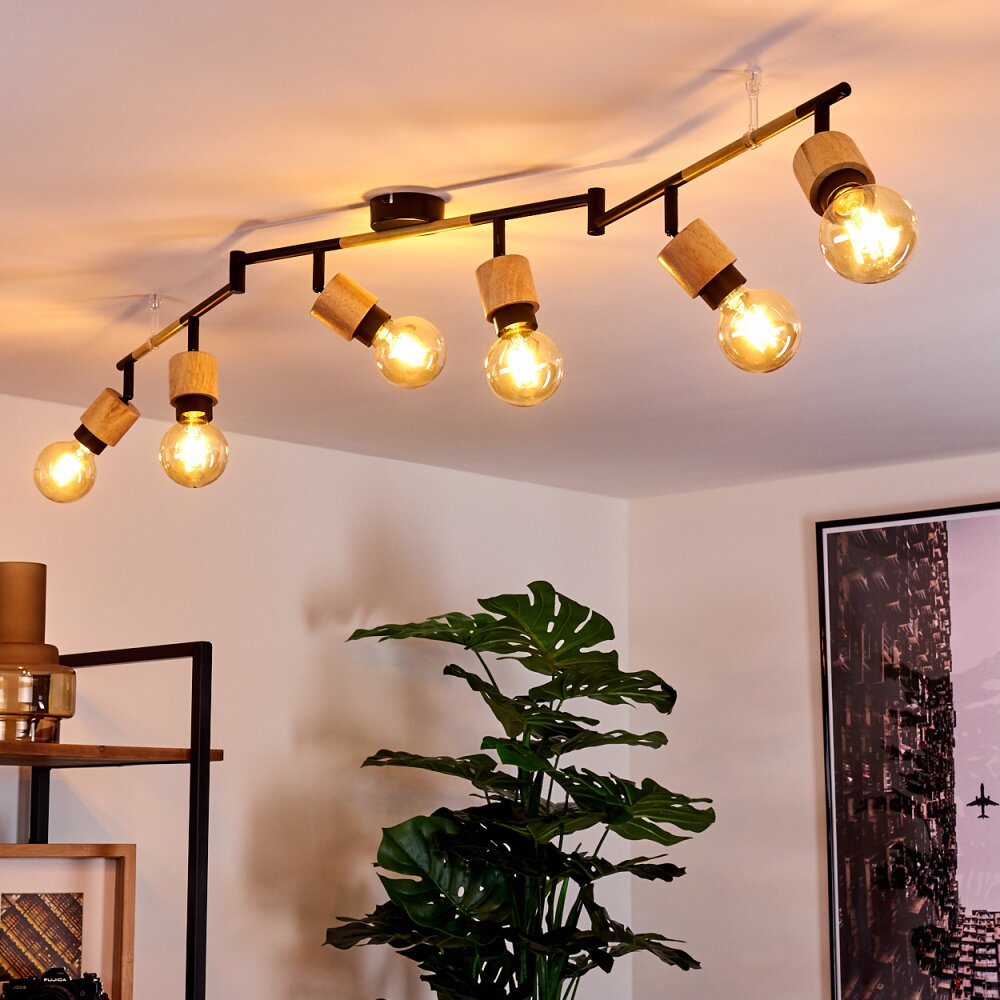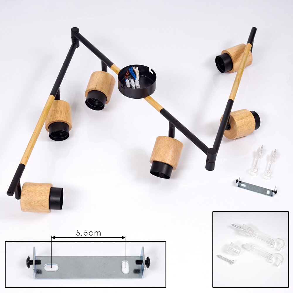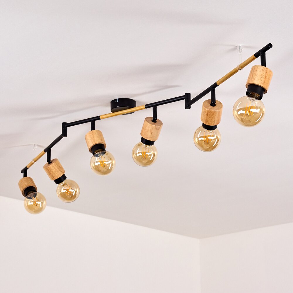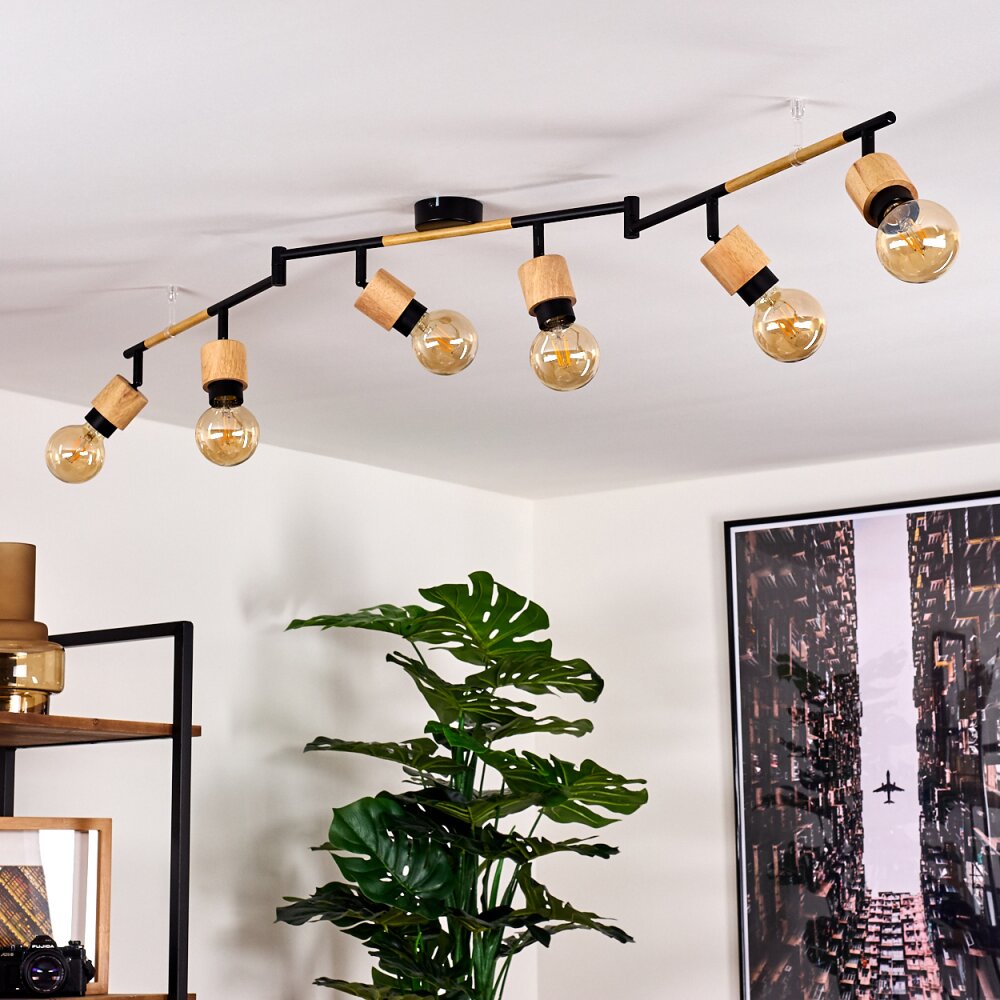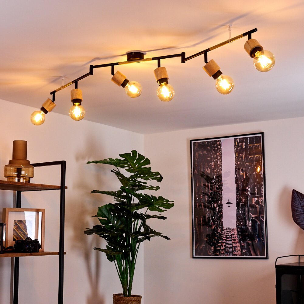 Sezze Plafondlamp Hout licht, Zwart, 6-lichts