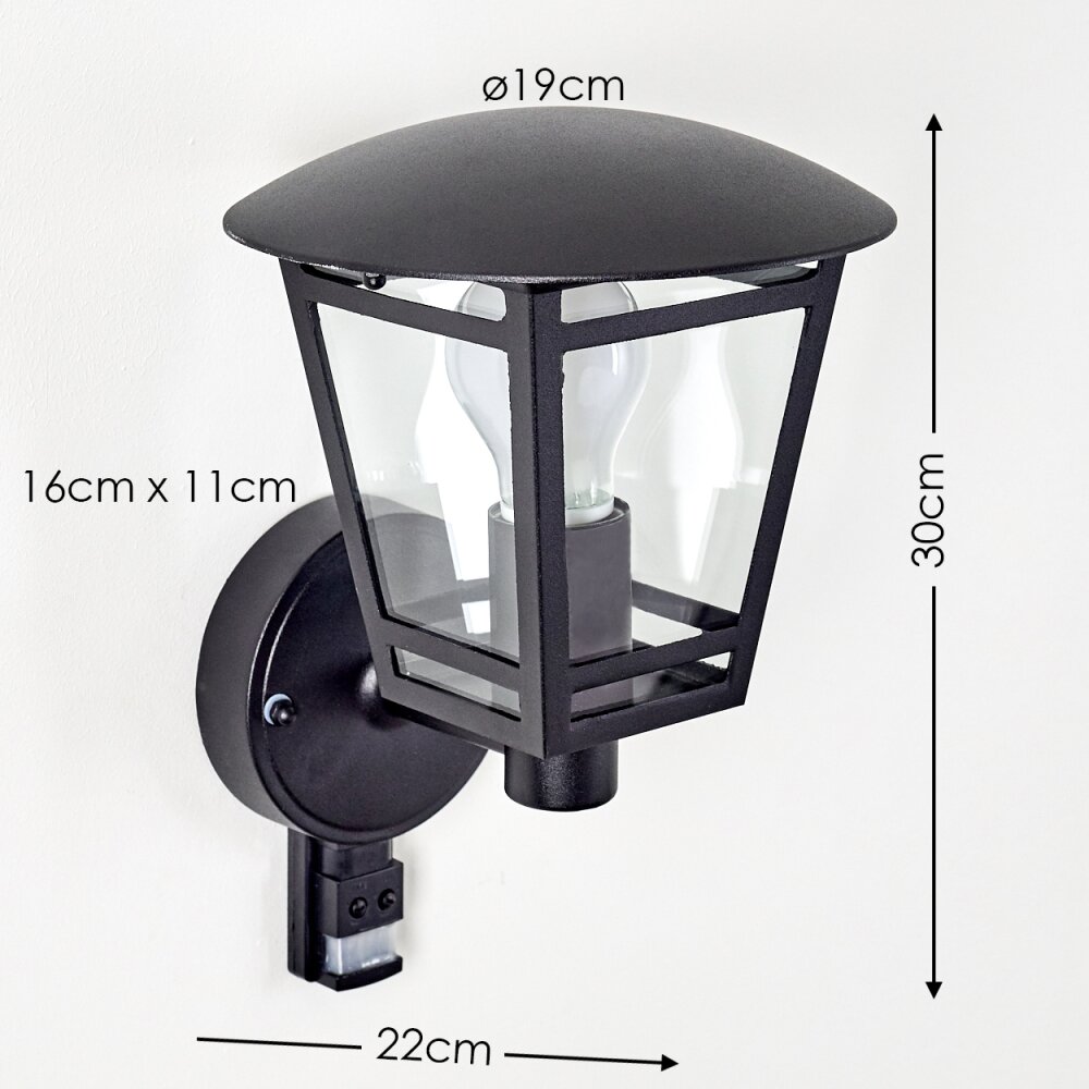 Siera Buiten muurverlichting Zwart, 1-licht, Bewegingsmelder