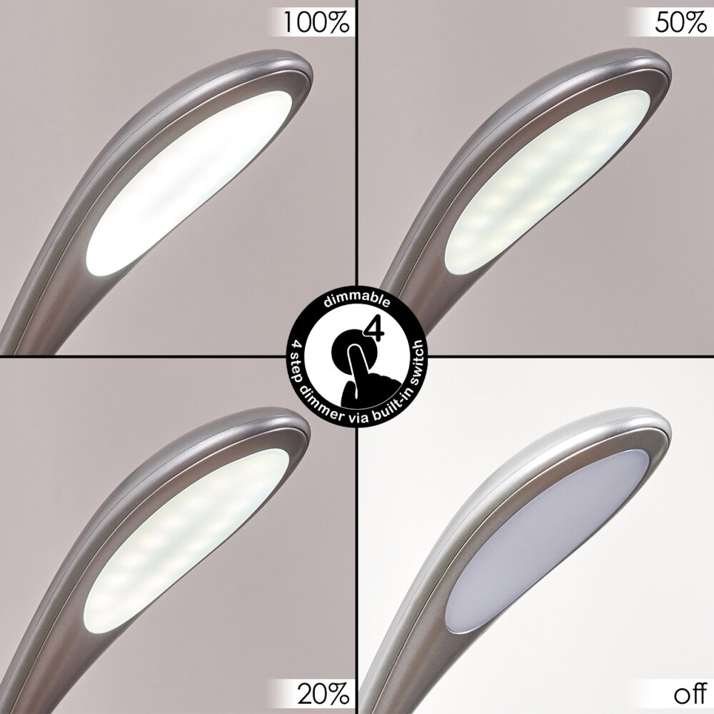 Viada Bureaulamp, Tafellamp LED Chroom, Nikkel mat, 1-licht