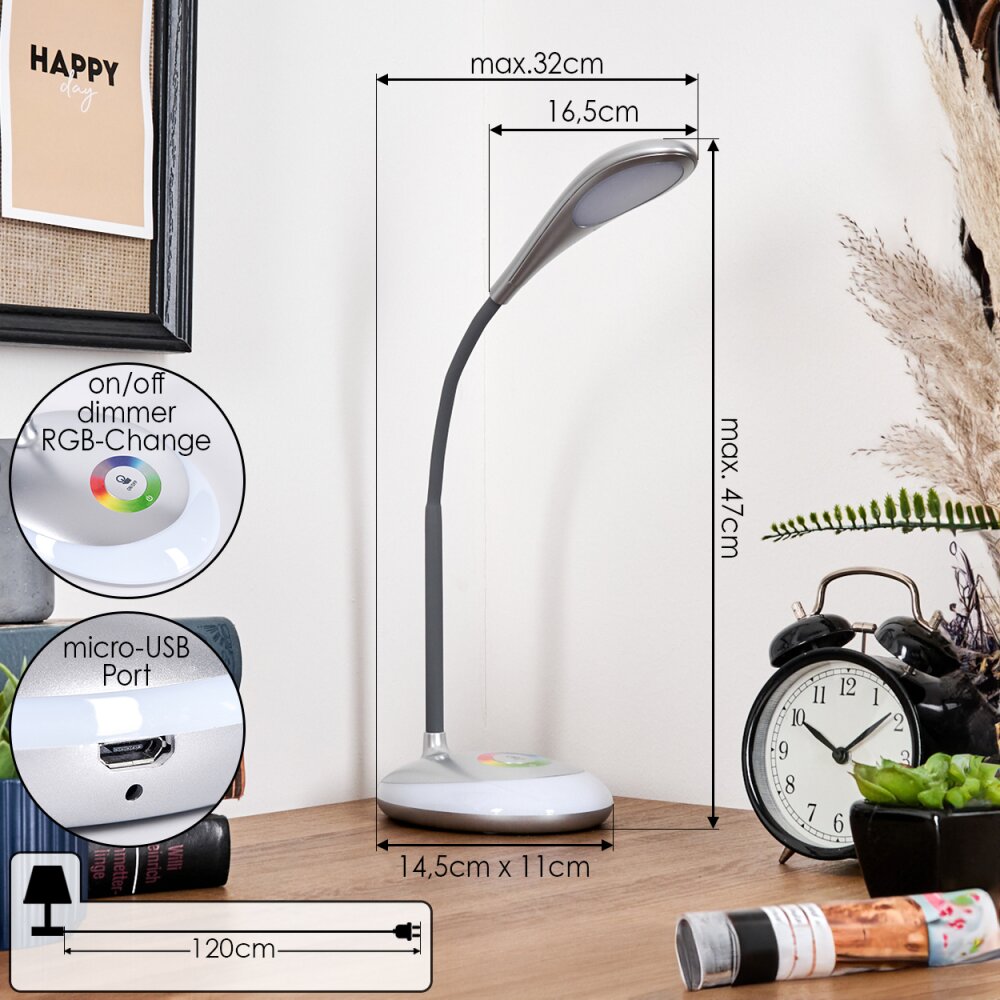 Sneslev Bureaulamp, Tafellamp LED Zilver, 1-licht, Kleurwisselaar