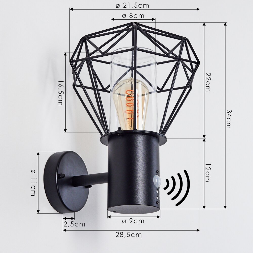 Solda Buiten muurverlichting Zwart, 1-licht, Bewegingsmelder