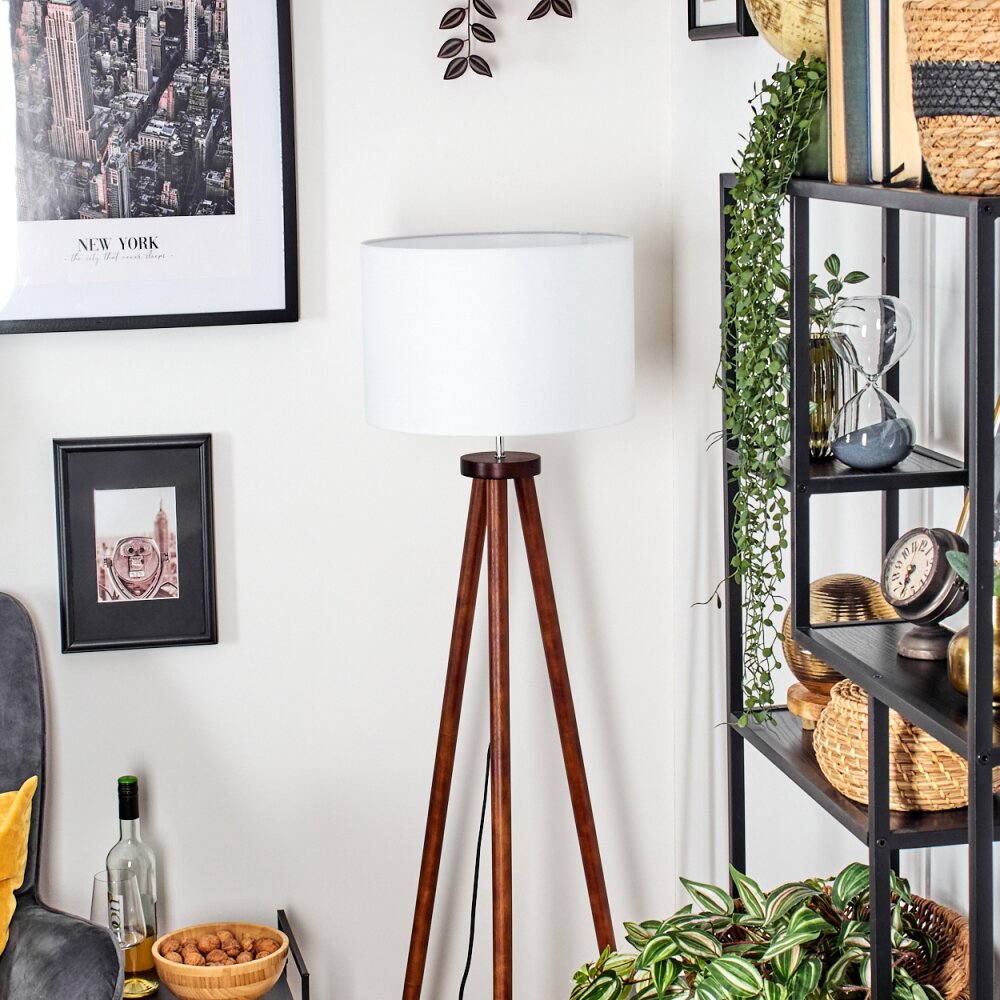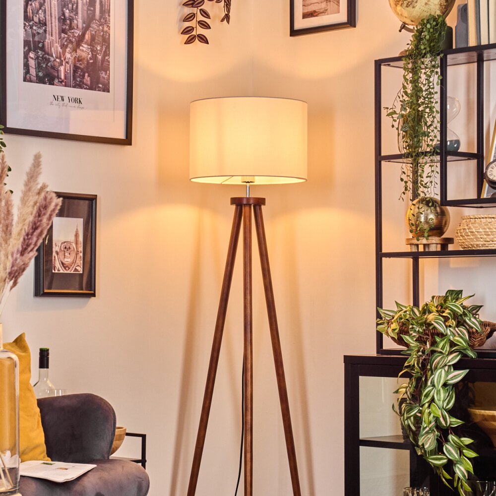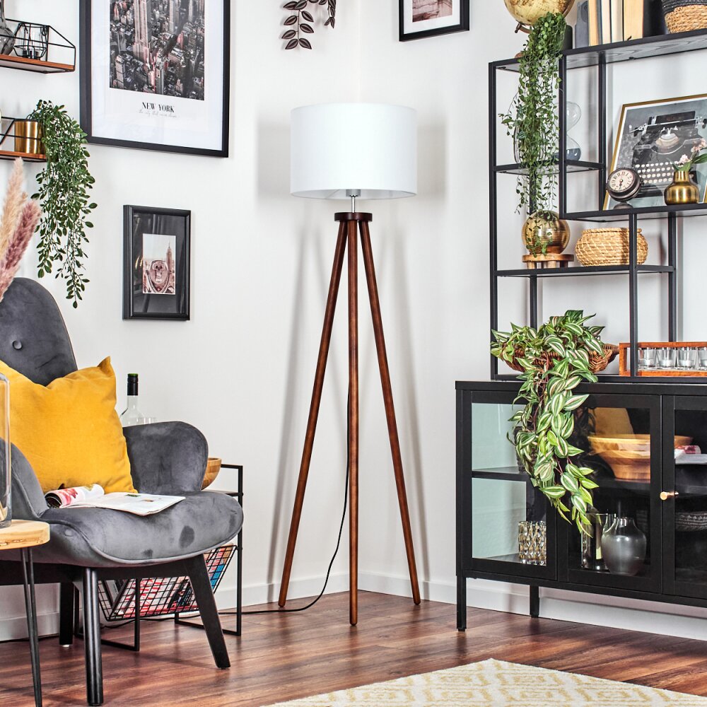 Soungou Staande lamp Chroom, Hout donker, 1-licht