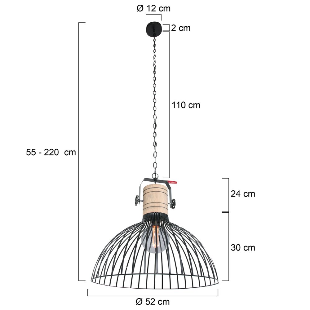 Shalo Hanger Hout licht, Zwart, 1-licht