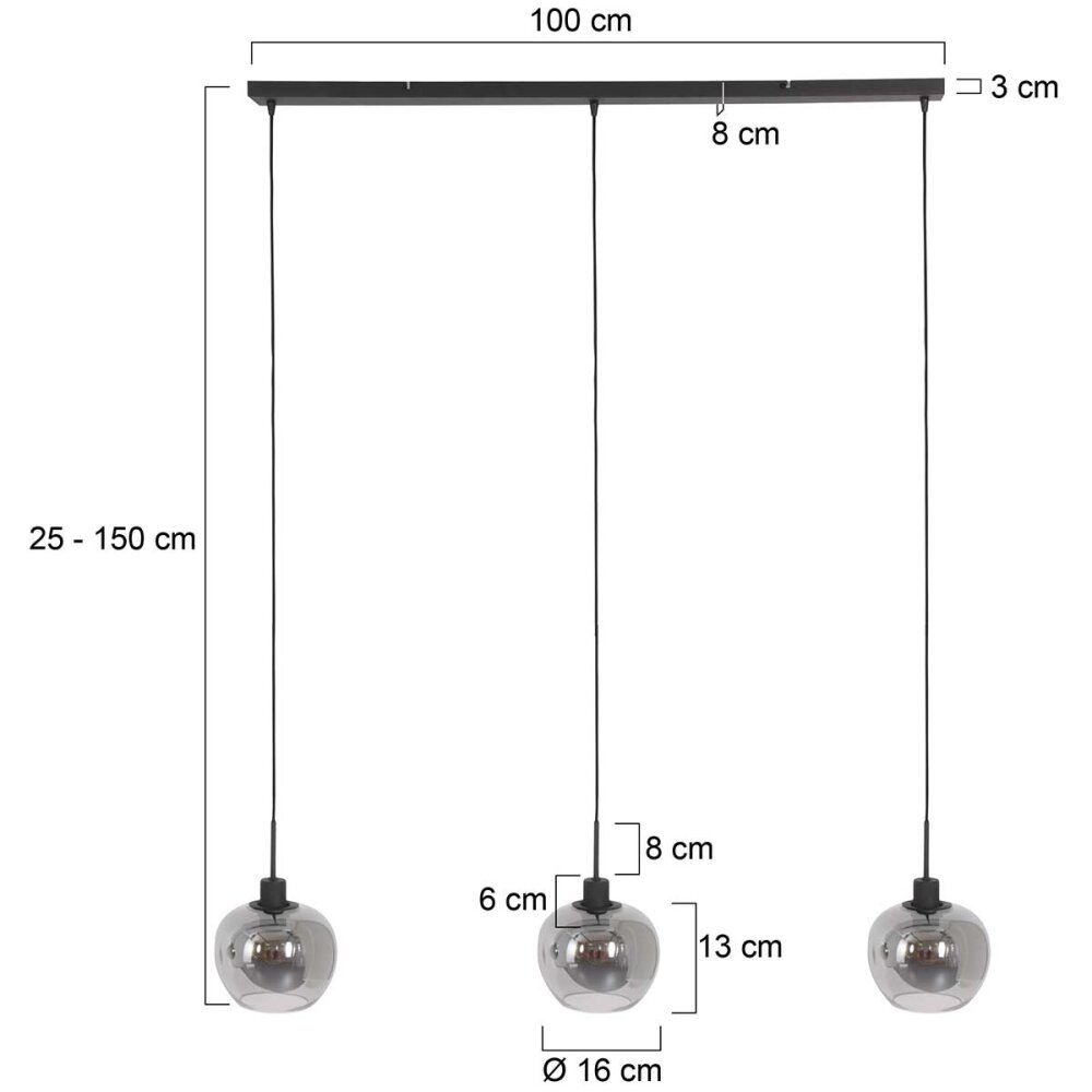 Tador Hanglamp, Kogellampje, Hanglamp Zwart, 3-lichts