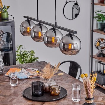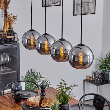 Gastor Hanglamp - Glas Chroom, Rookkleurig, 4-lichts