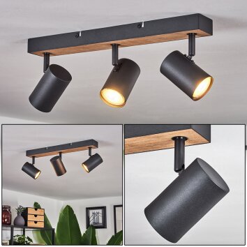 Cabanas Plafondlamp LED houtlook, Zwart, 1-licht
