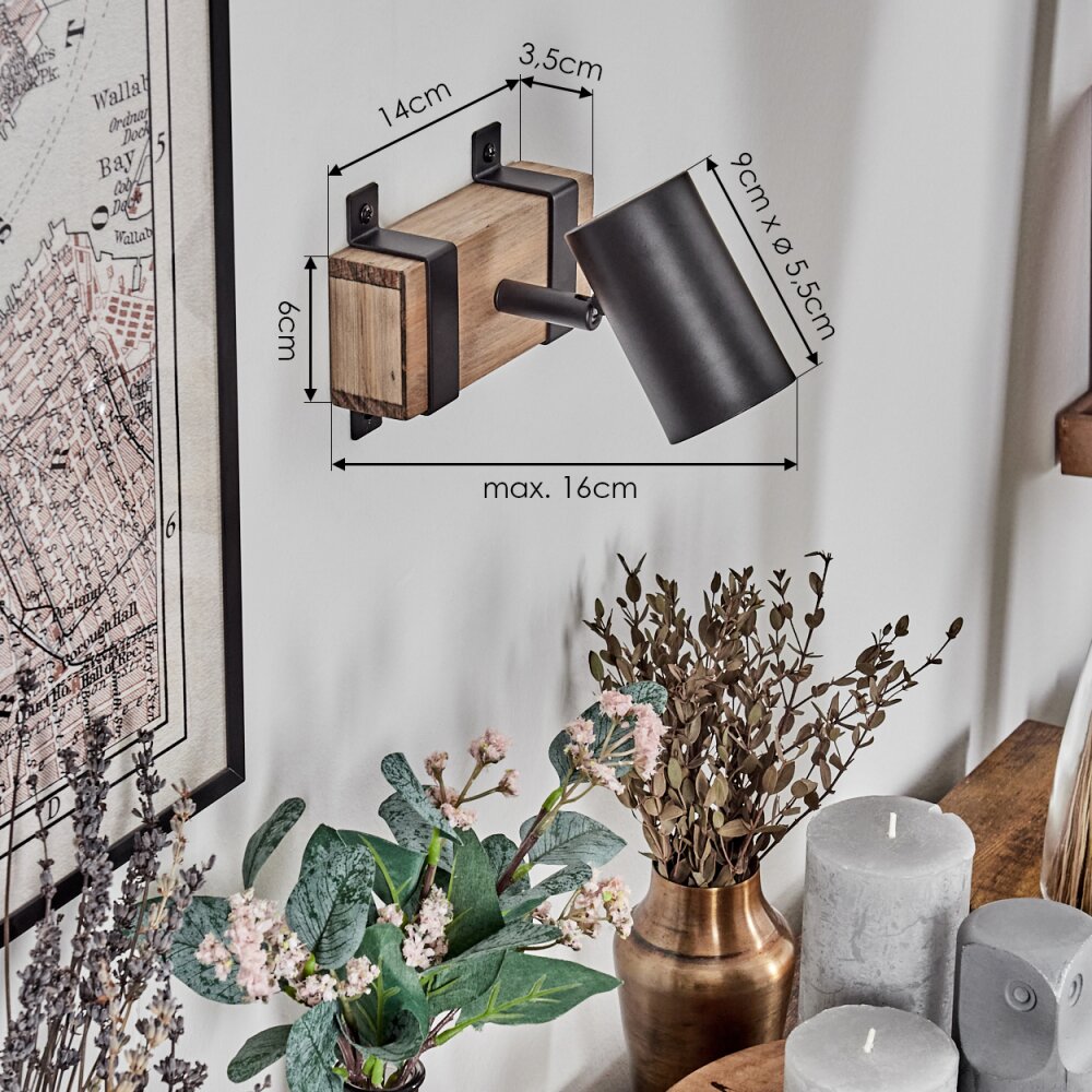Storuma Wandlamp, Muurspot Natuurlijke kleuren, Zwart, 1-licht