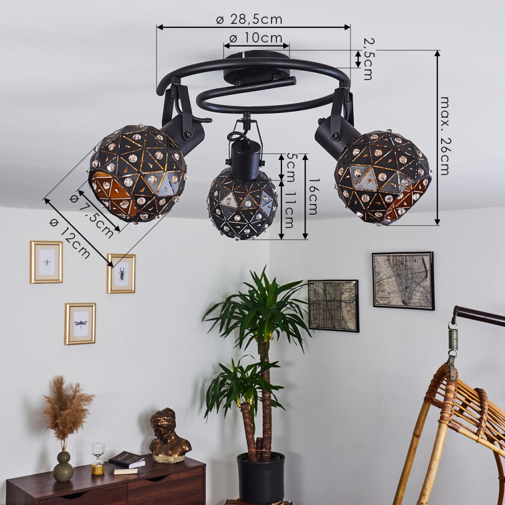 Sunasau Plafondlamp Zwart, 3-lichts