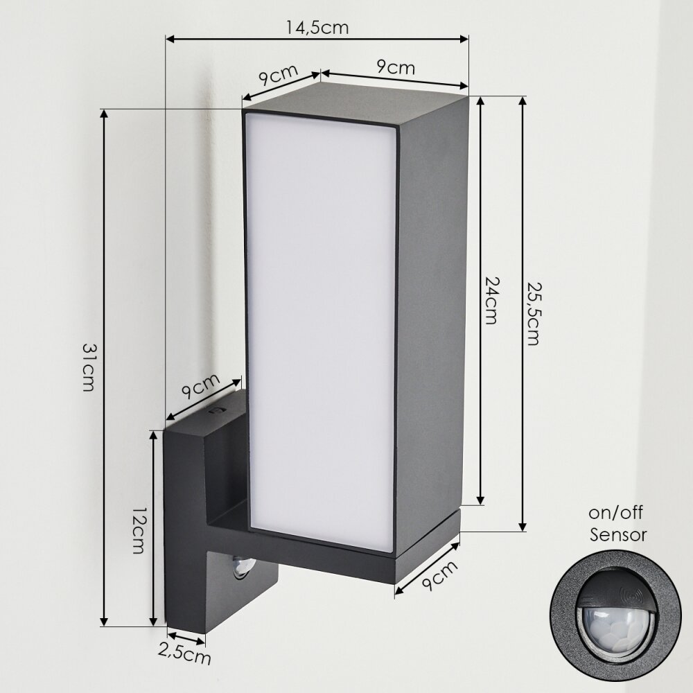 Swanek Wandlamp voor buiten, Wandlamp LED Antraciet, 1-licht, Bewegingsmelder