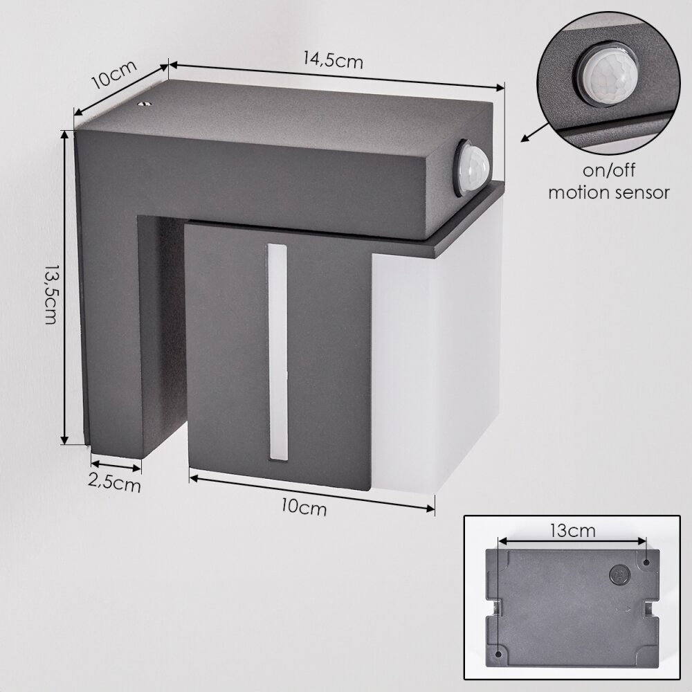 Swanek Wandlamp voor buiten, Wandlamp LED Antraciet, 1-licht, Bewegingsmelder