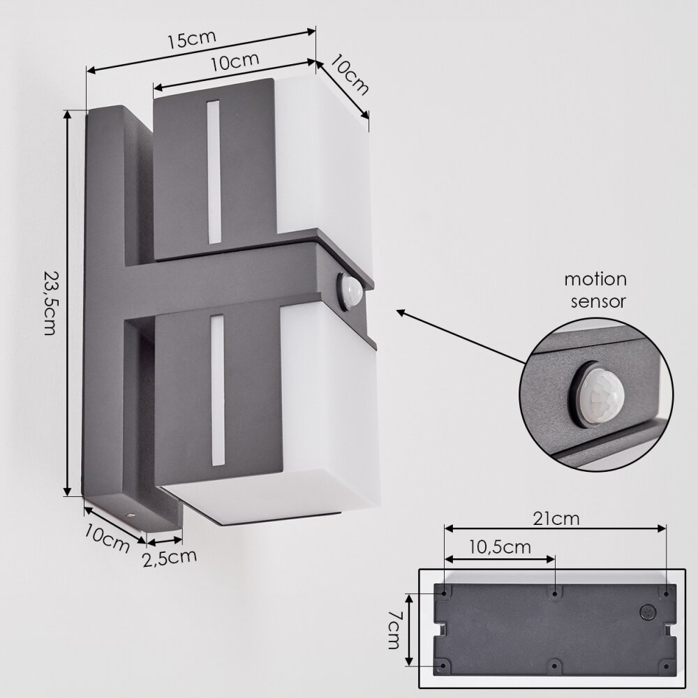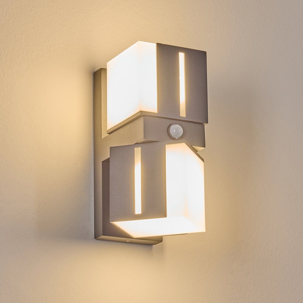 Swanek Wandlamp voor buiten, Wandlamp LED Antraciet, 2-lichts, Bewegingsmelder