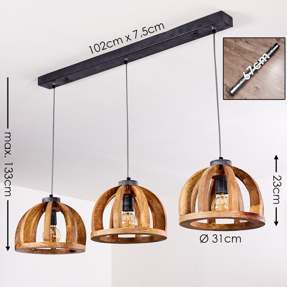Tabua Hanglamp Grijs, 3-lichts