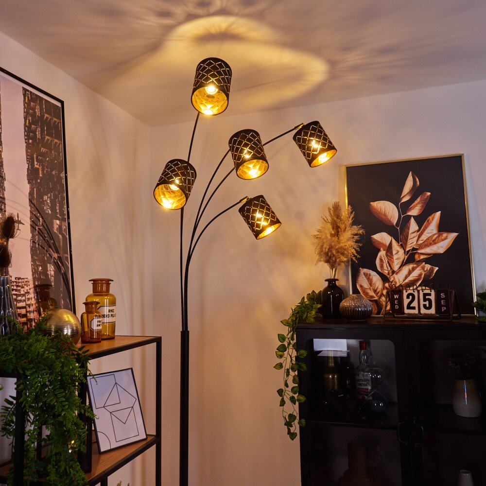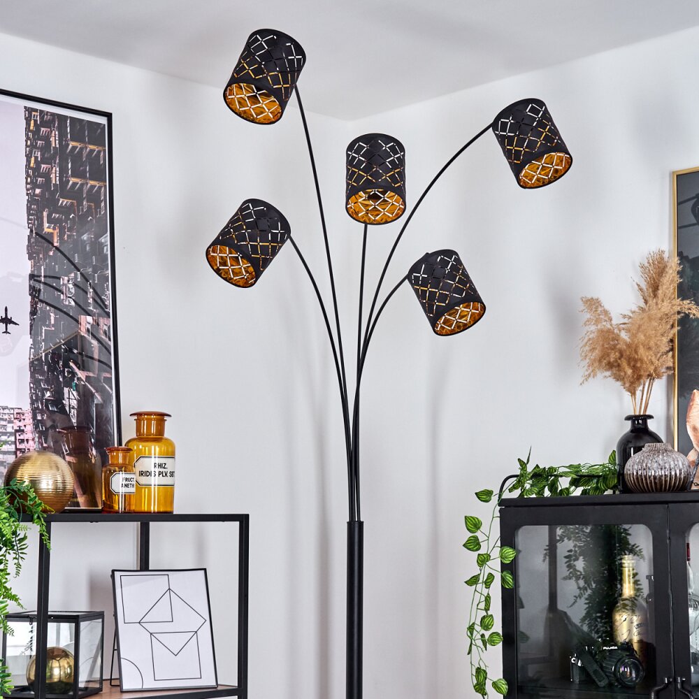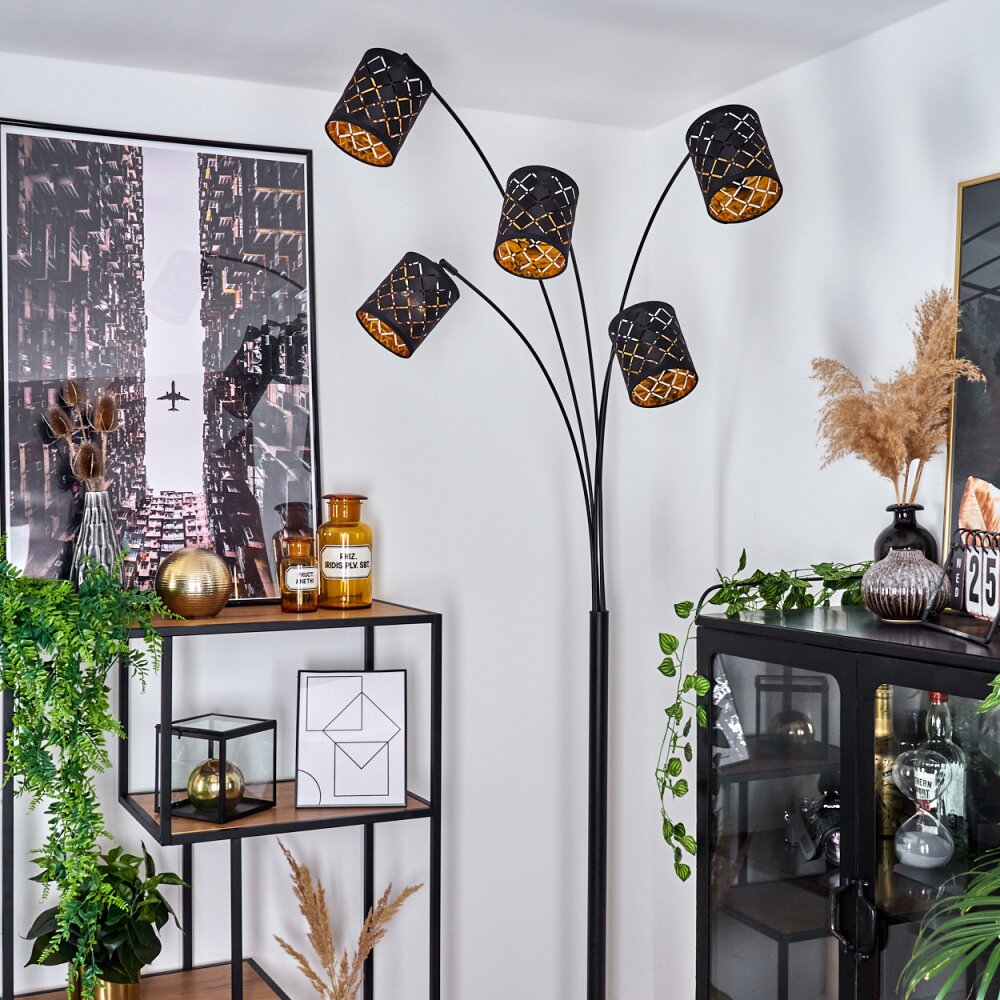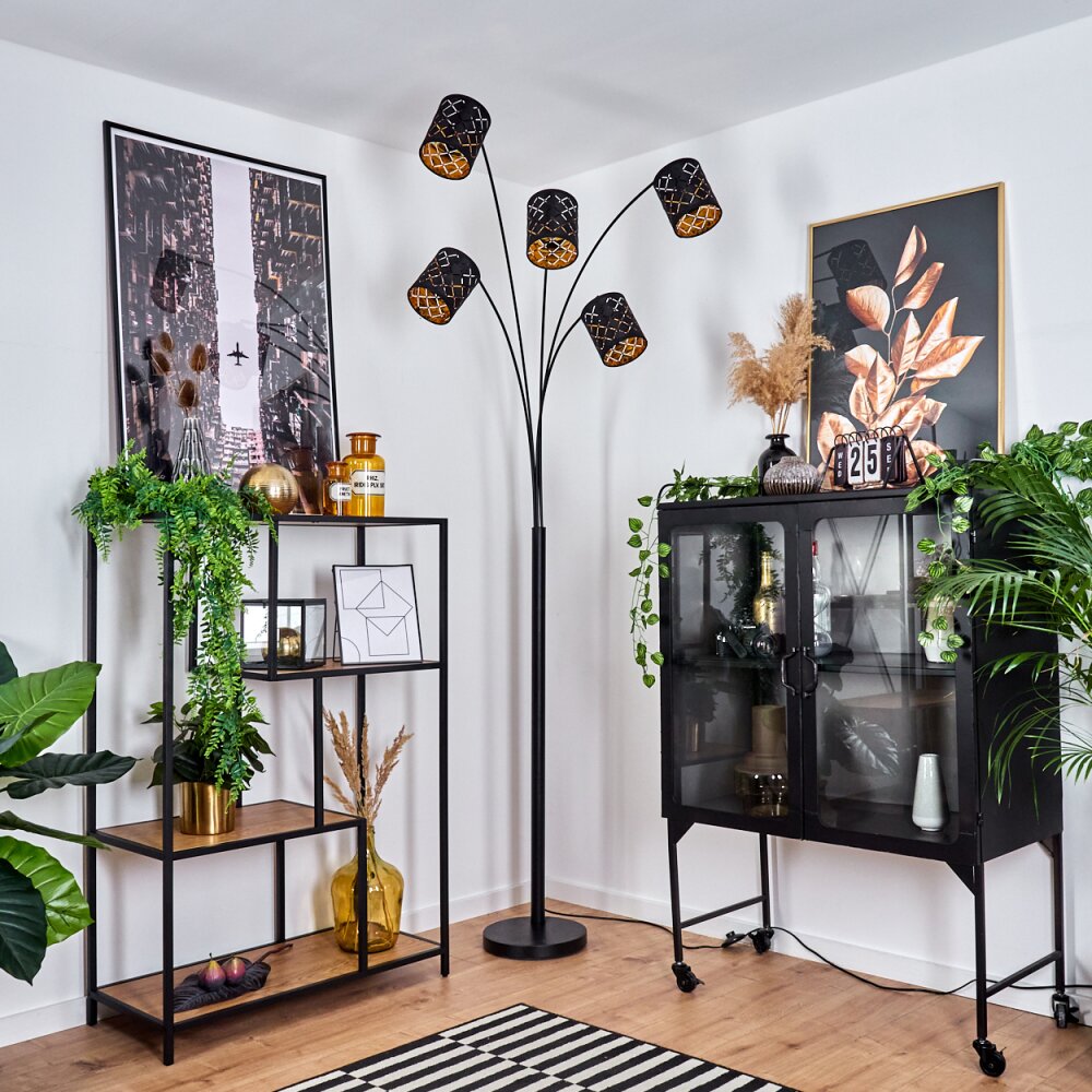 Tallaboa Staande lamp Zwart, 5-lichts, Stoffen kap