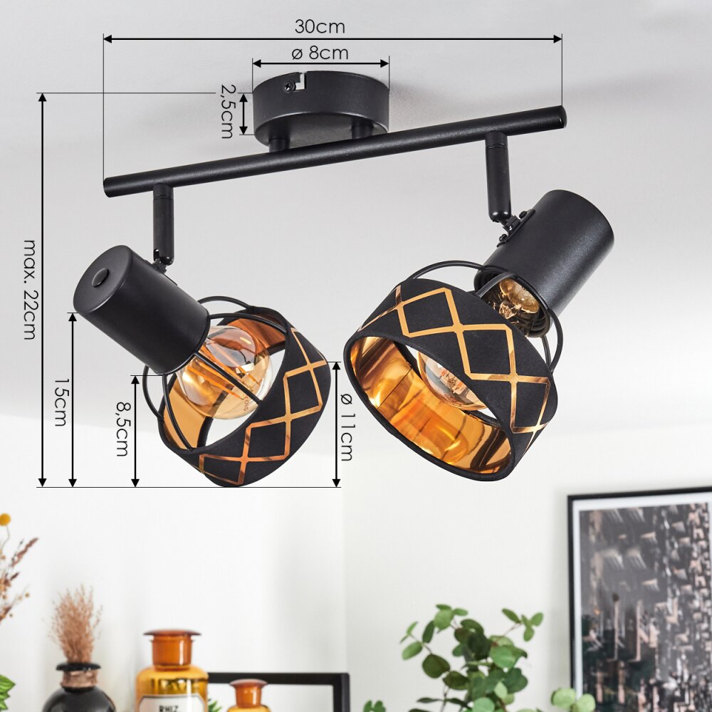 Tarasp Plafondlamp Zwart, 2-lichts