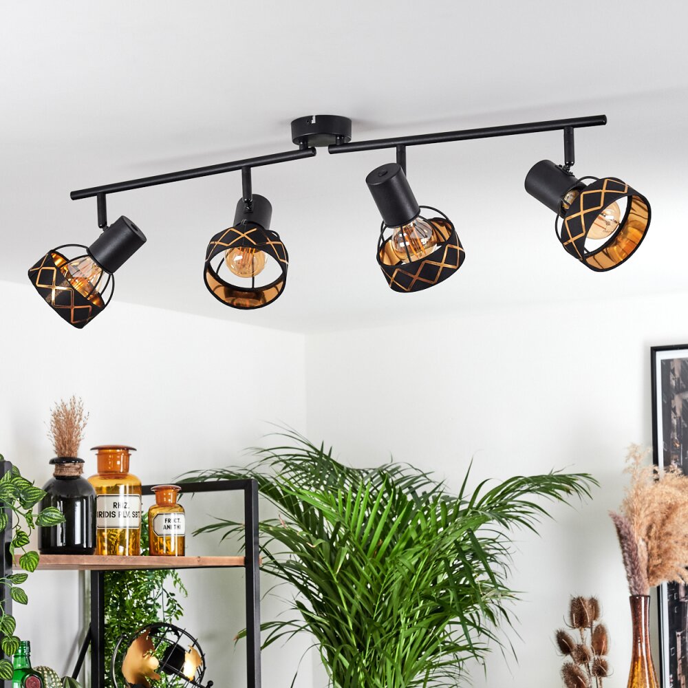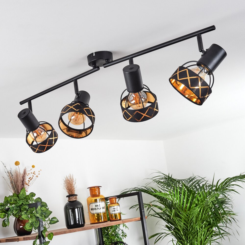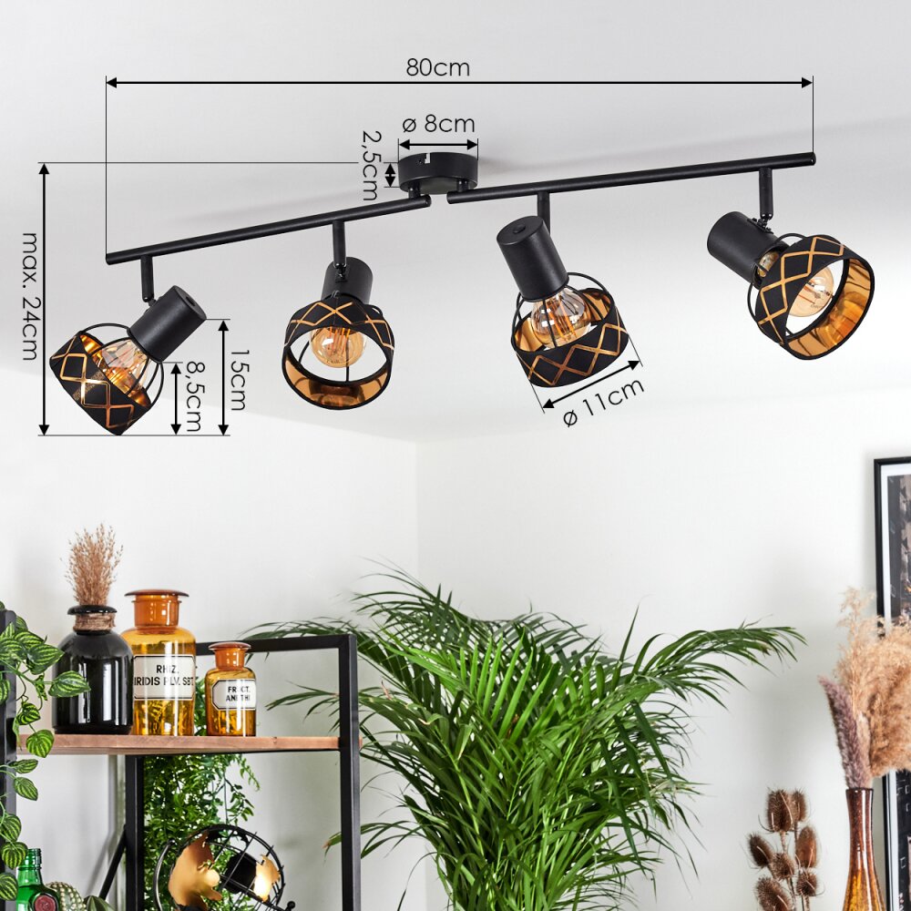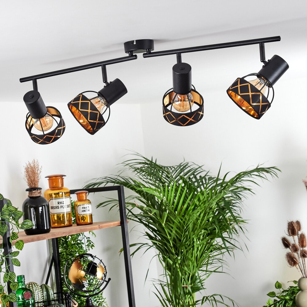 Safari Plafondlamp Chroom, Natuurlijke kleuren, Zwart, 4-lichts